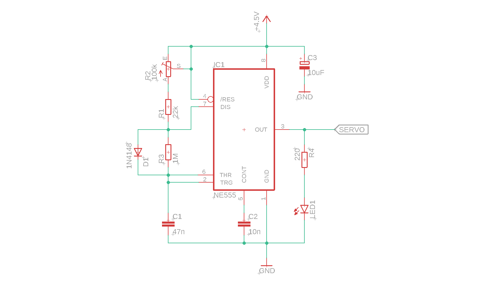 The idea of this project is to use the NE555 timer integrated circuit to control a servo motor. This way, turning a knob will make the servo mimic that motion. Building this circuit more times, we can control as many servos as we want, each one with their own knob.