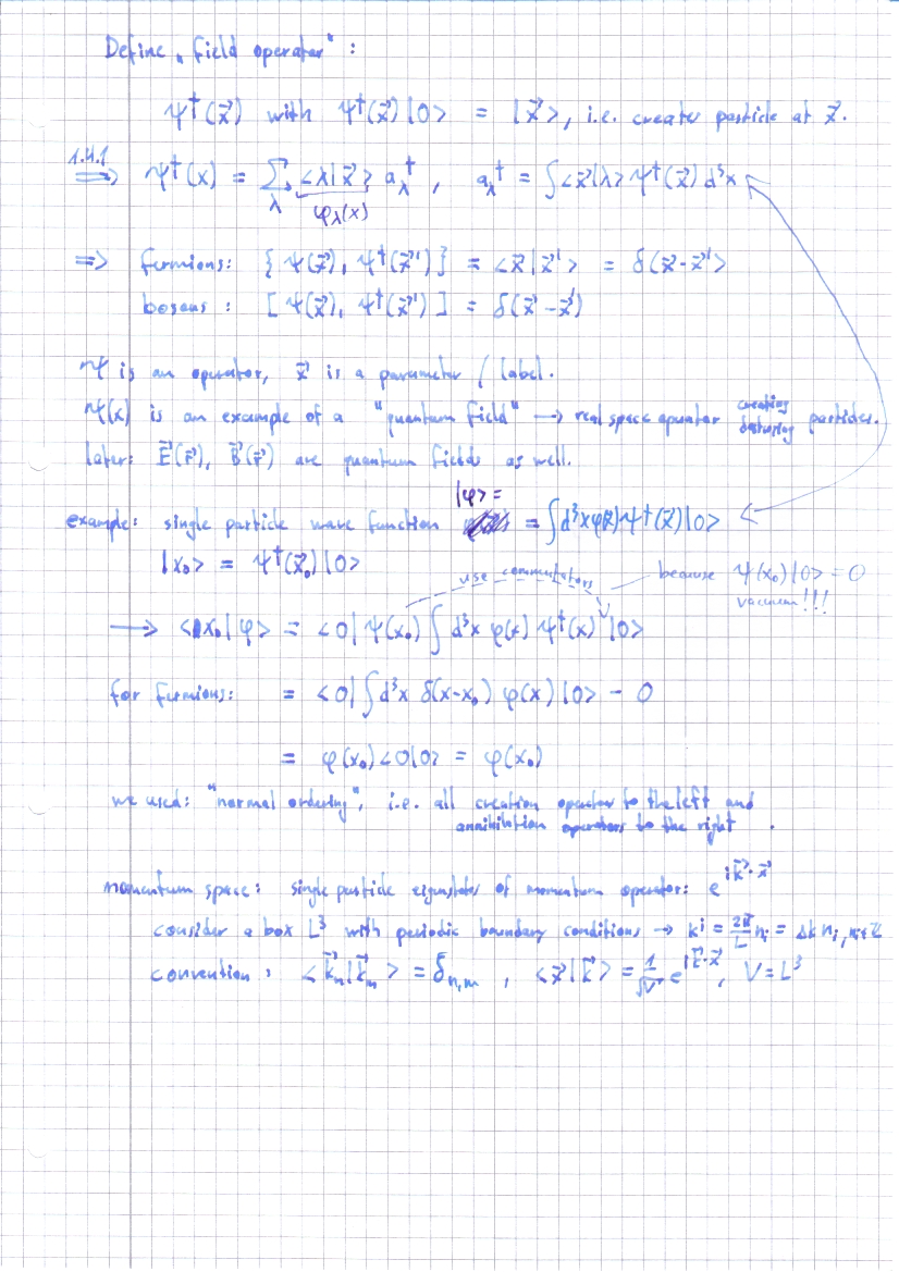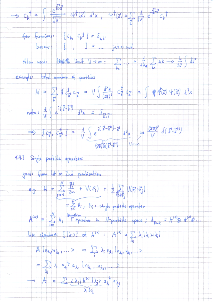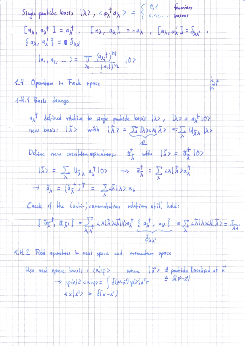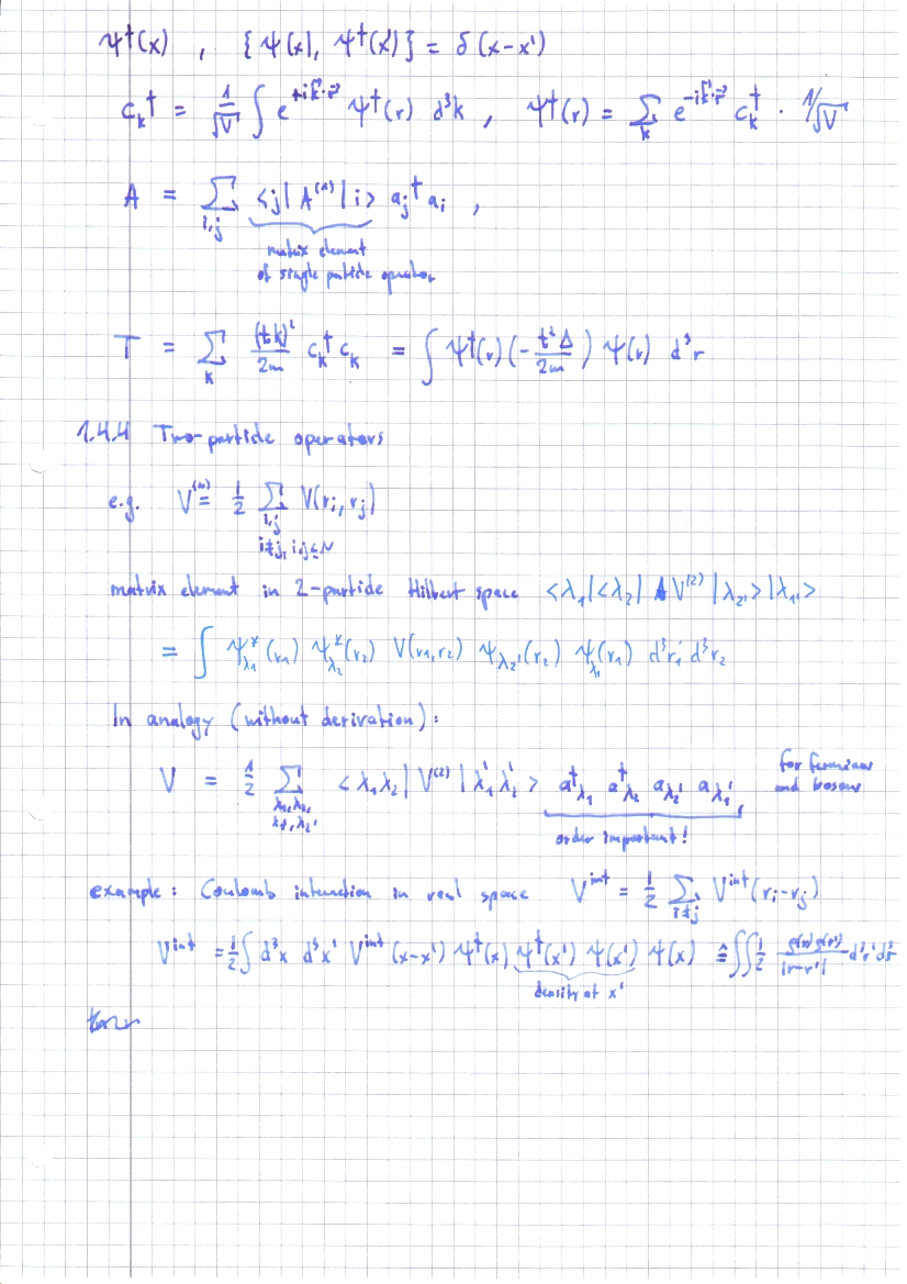 - 2012-10-15: operators in Fock space, basis change, field operators in real space and momentum space, single particle operators