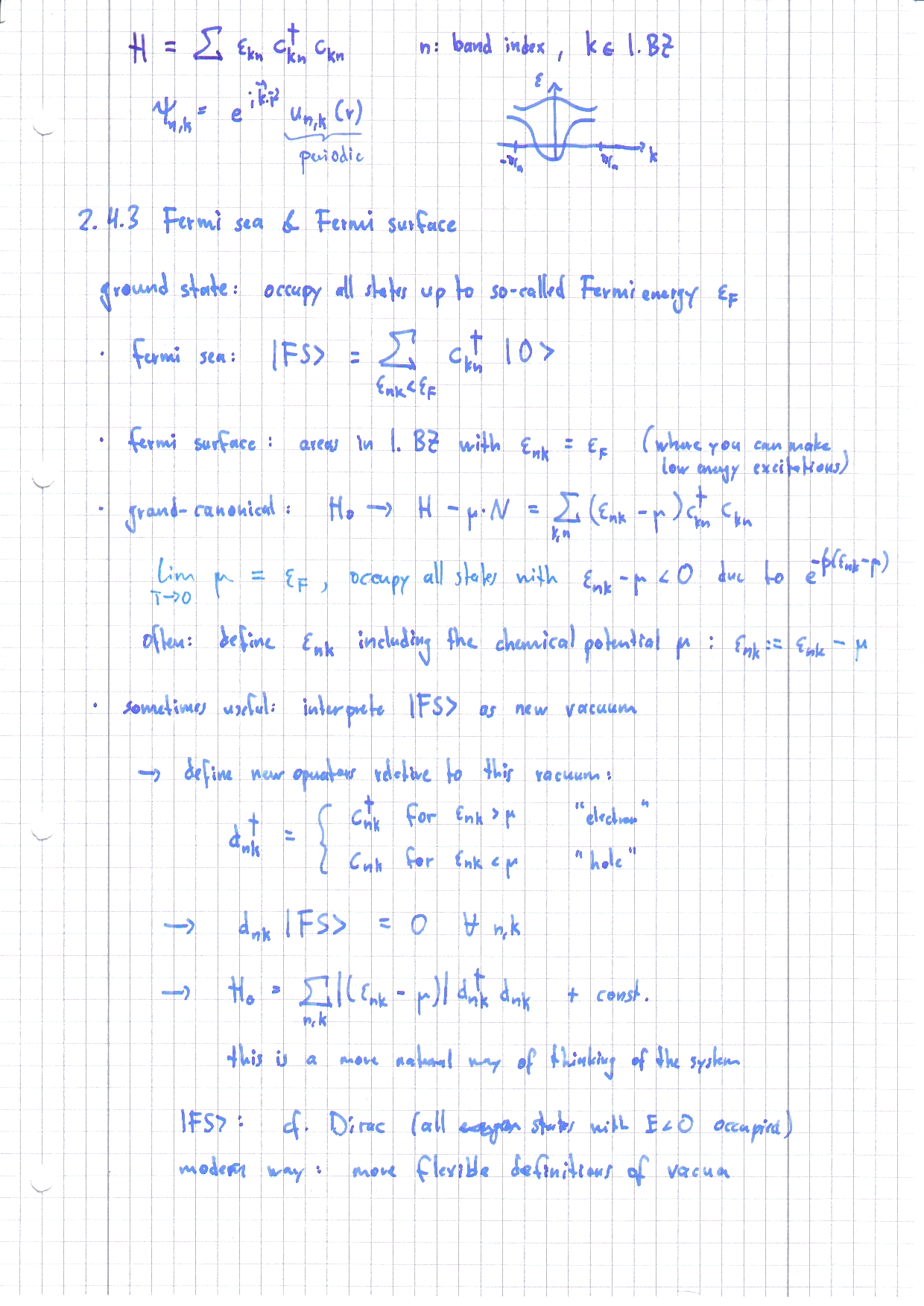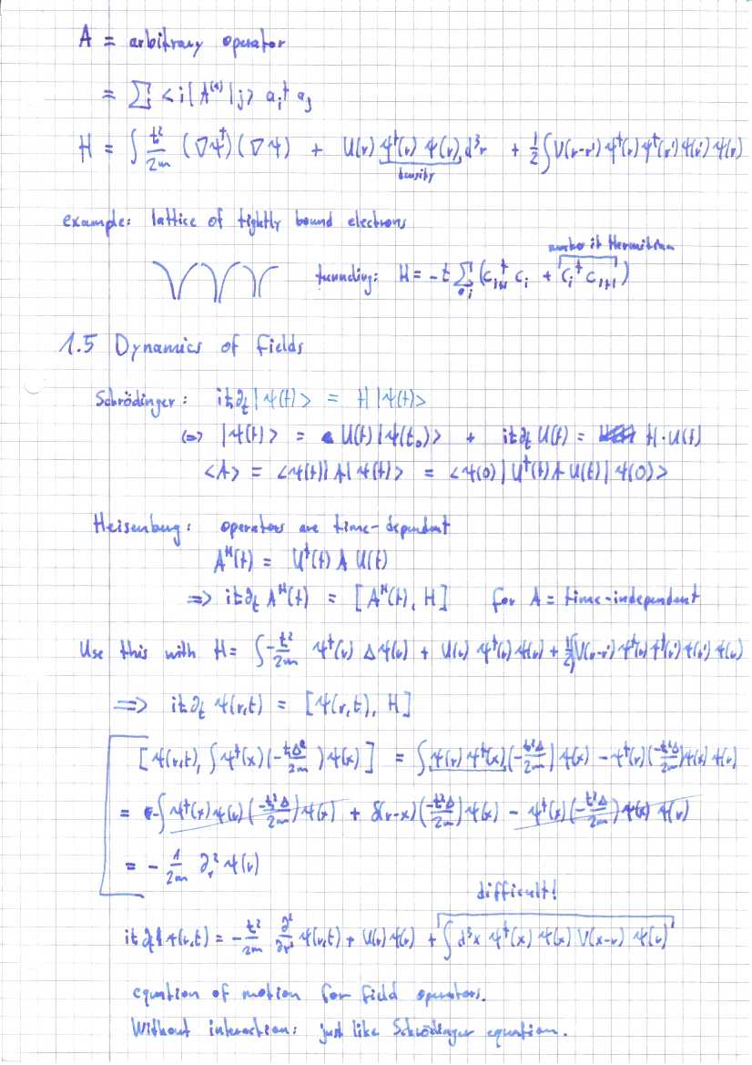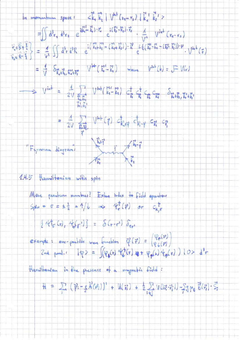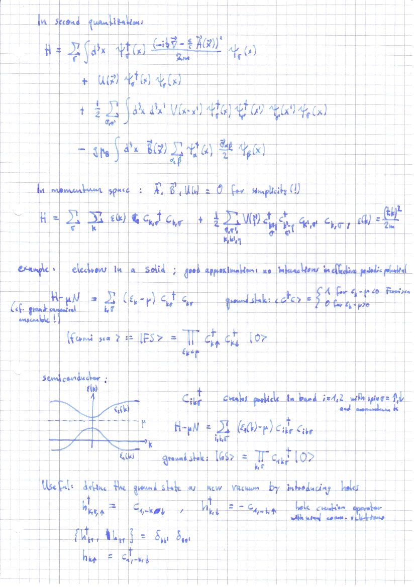 - 2013-04-29: field operators in real & momentum space (cont'd), single particle operators, two particle operators, Hamiltonian with spin