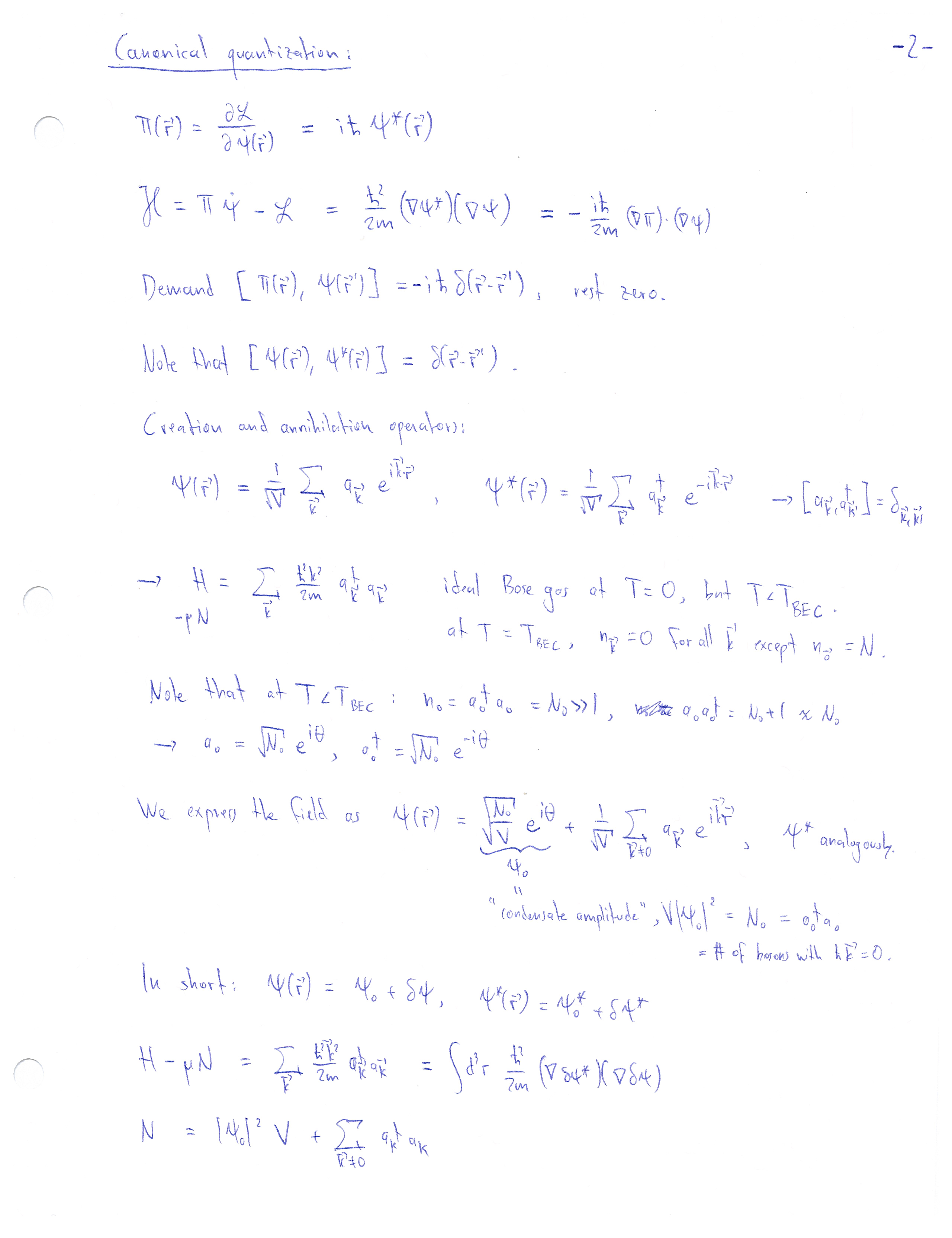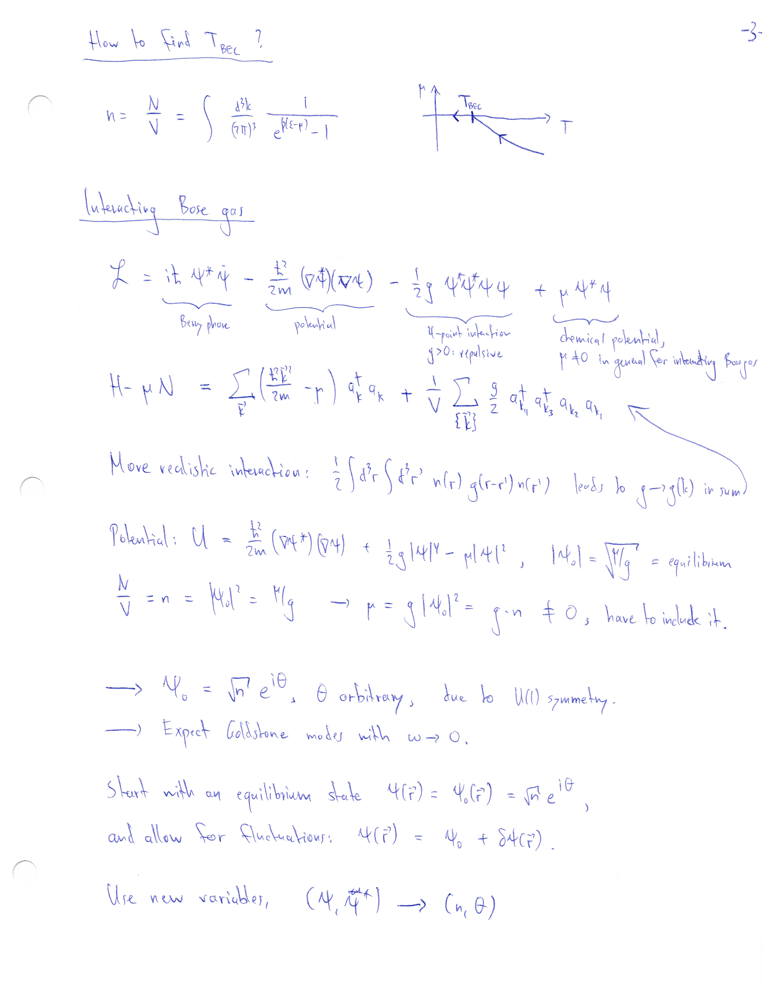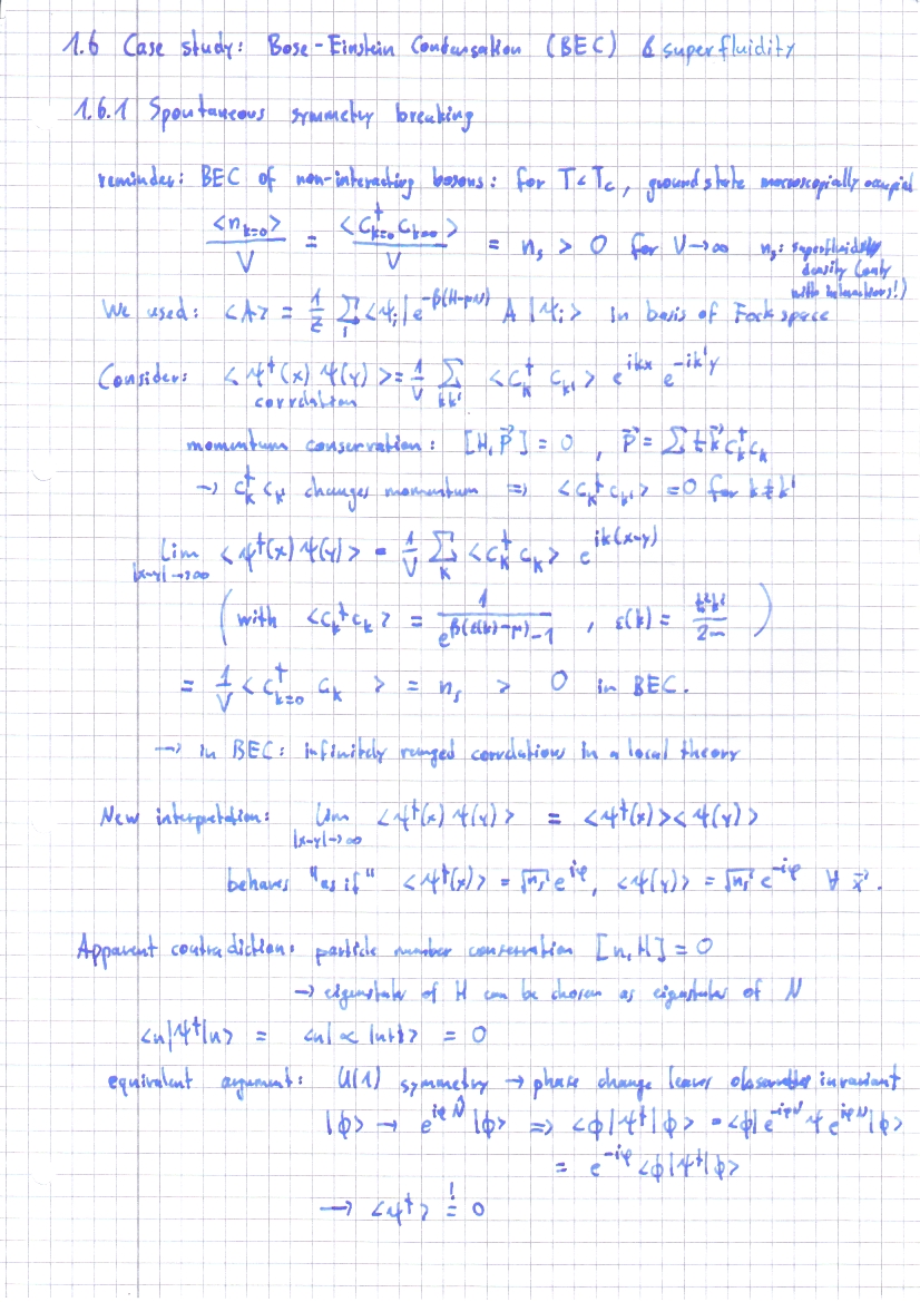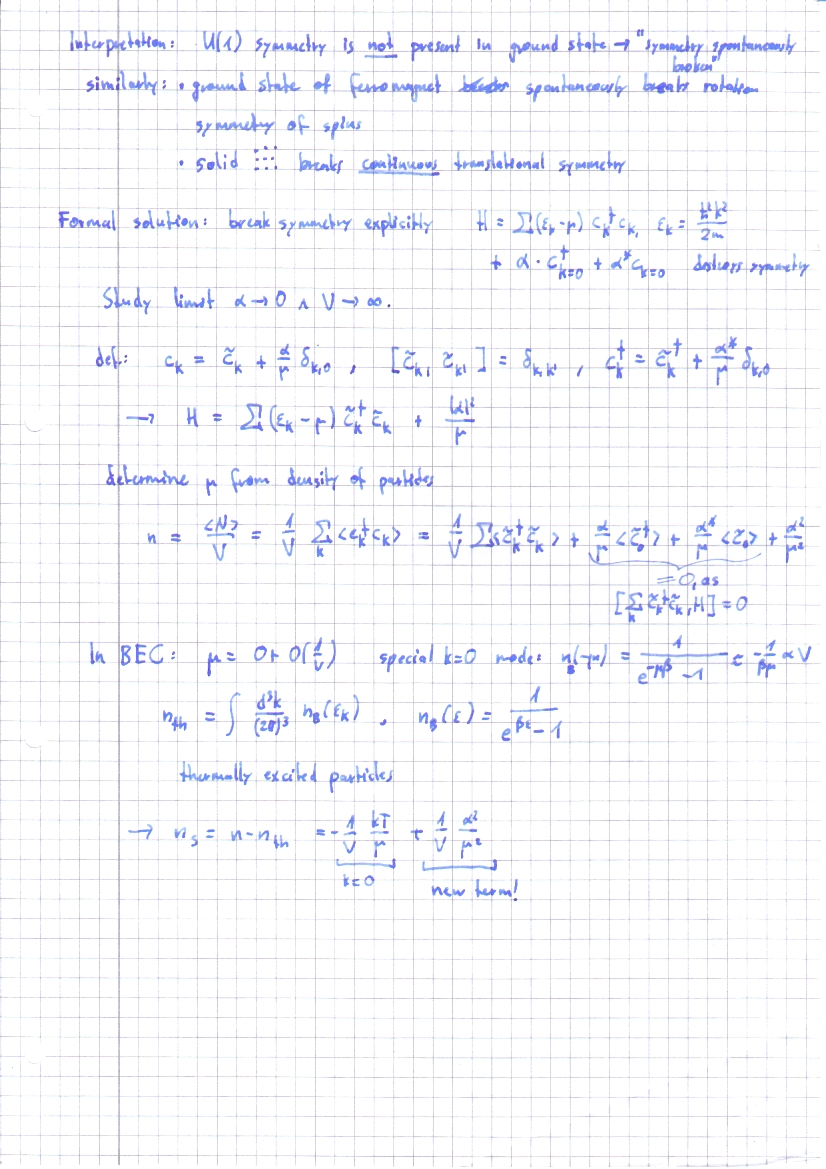 - 2012-10-23: case study: Bose Einstein condensate and superfluidity (cont'd), Bogoliubov quasi particles, superfluidity