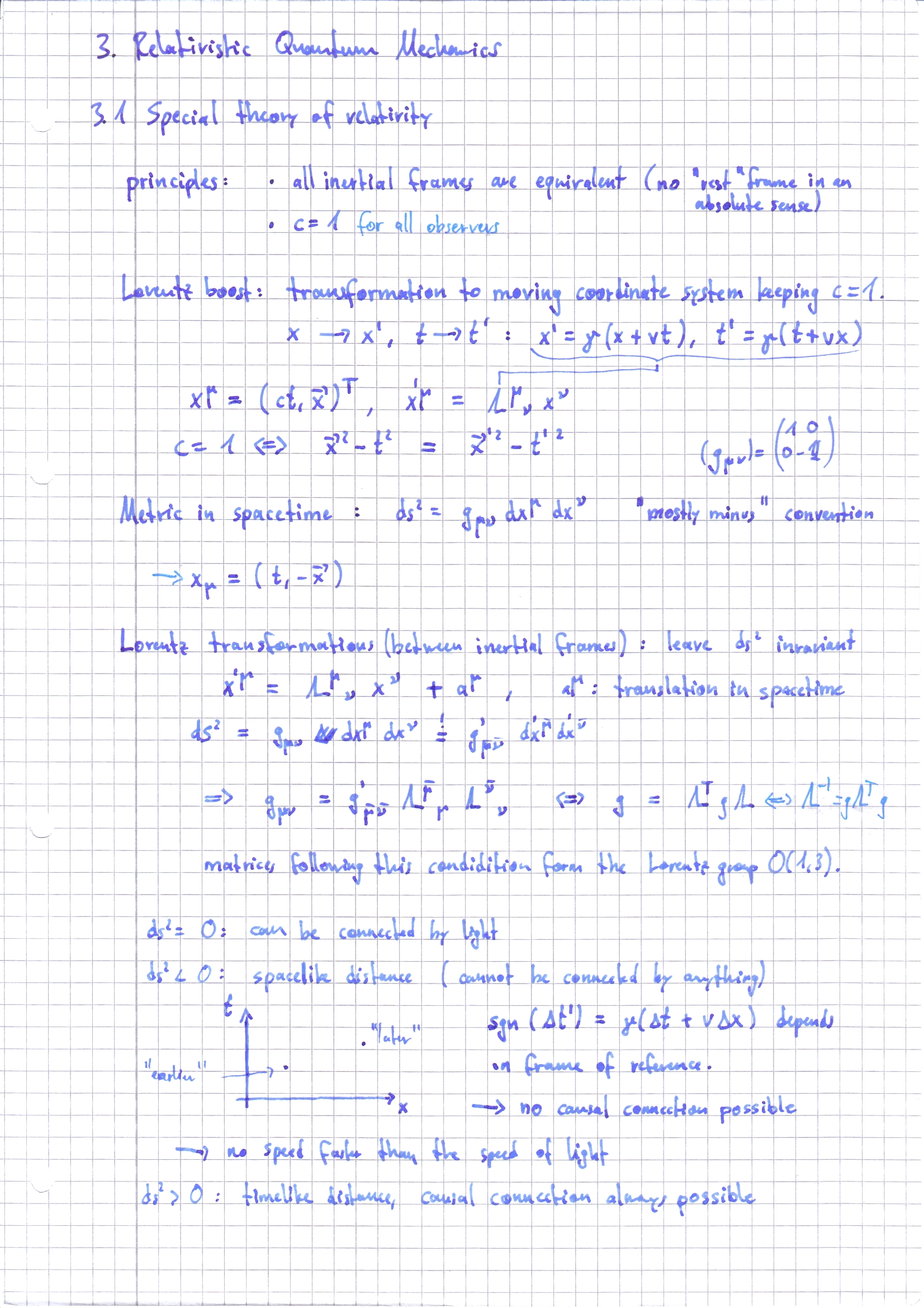 - 2012-11-12: relativistic quantum mechanics, special theory of relativity, Lorentz group