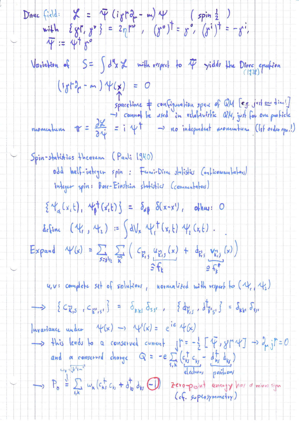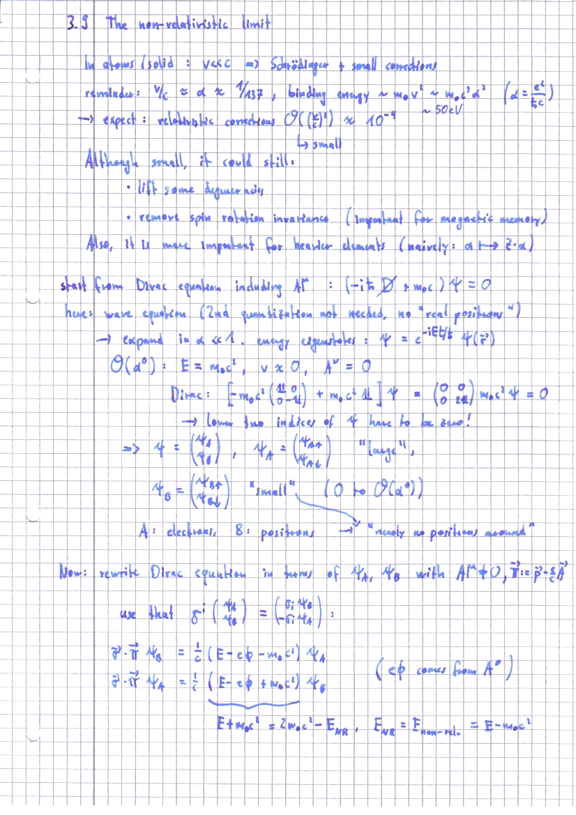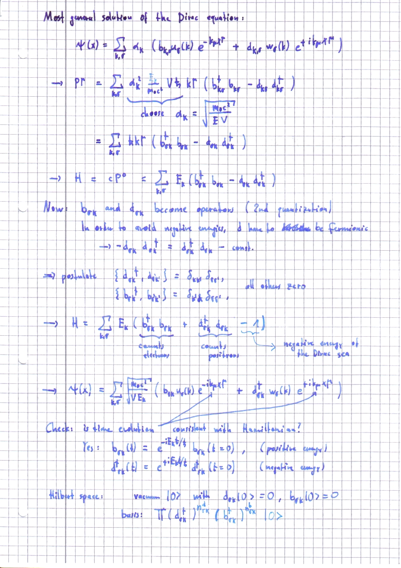 - 2012-11-27: most general solution of the Dirac equation, second quantization, the nonrelativistic limit