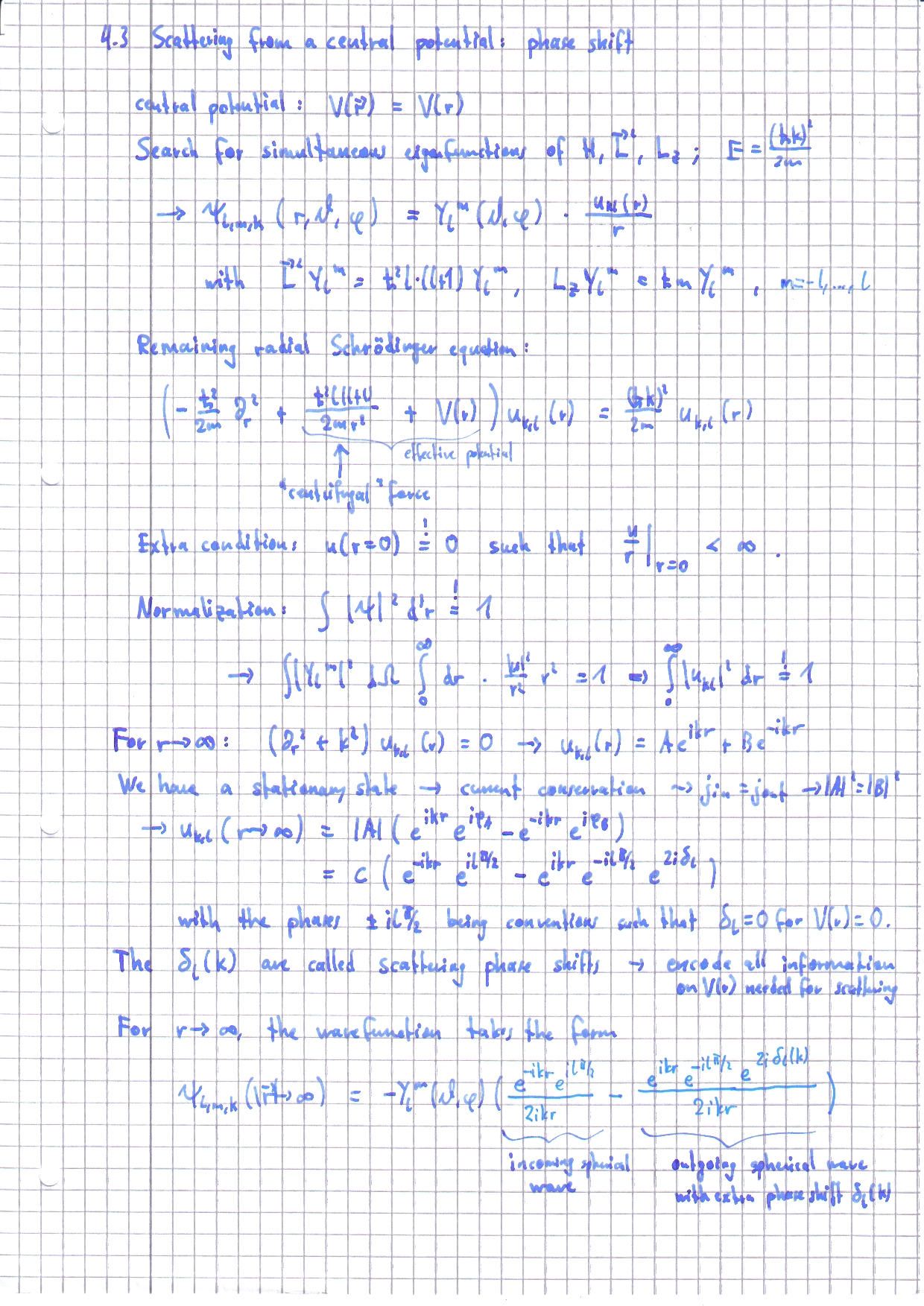 - 2012-12-10: scattering states, scattering from a central potential: phase shifts, phase shifts and cross section