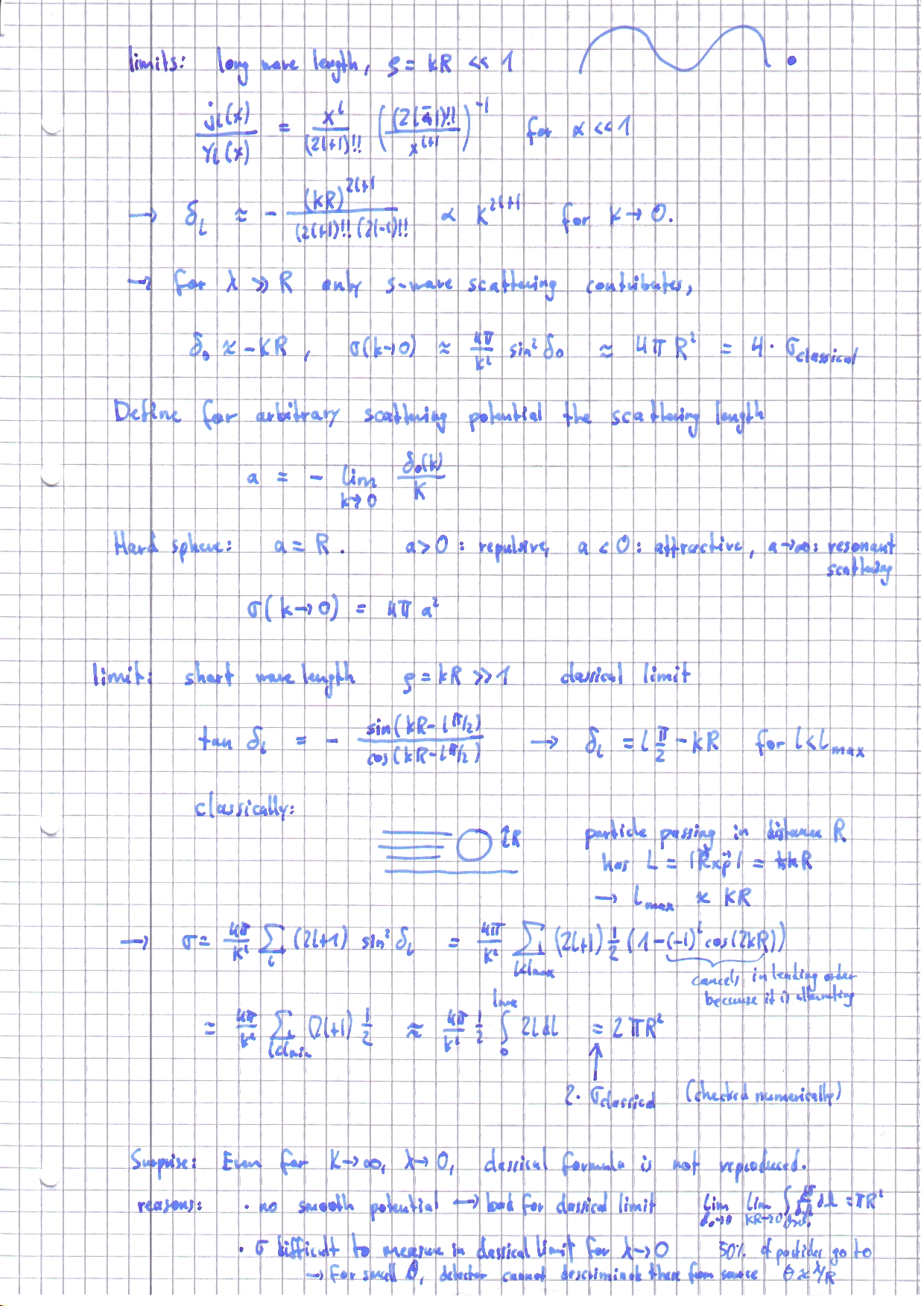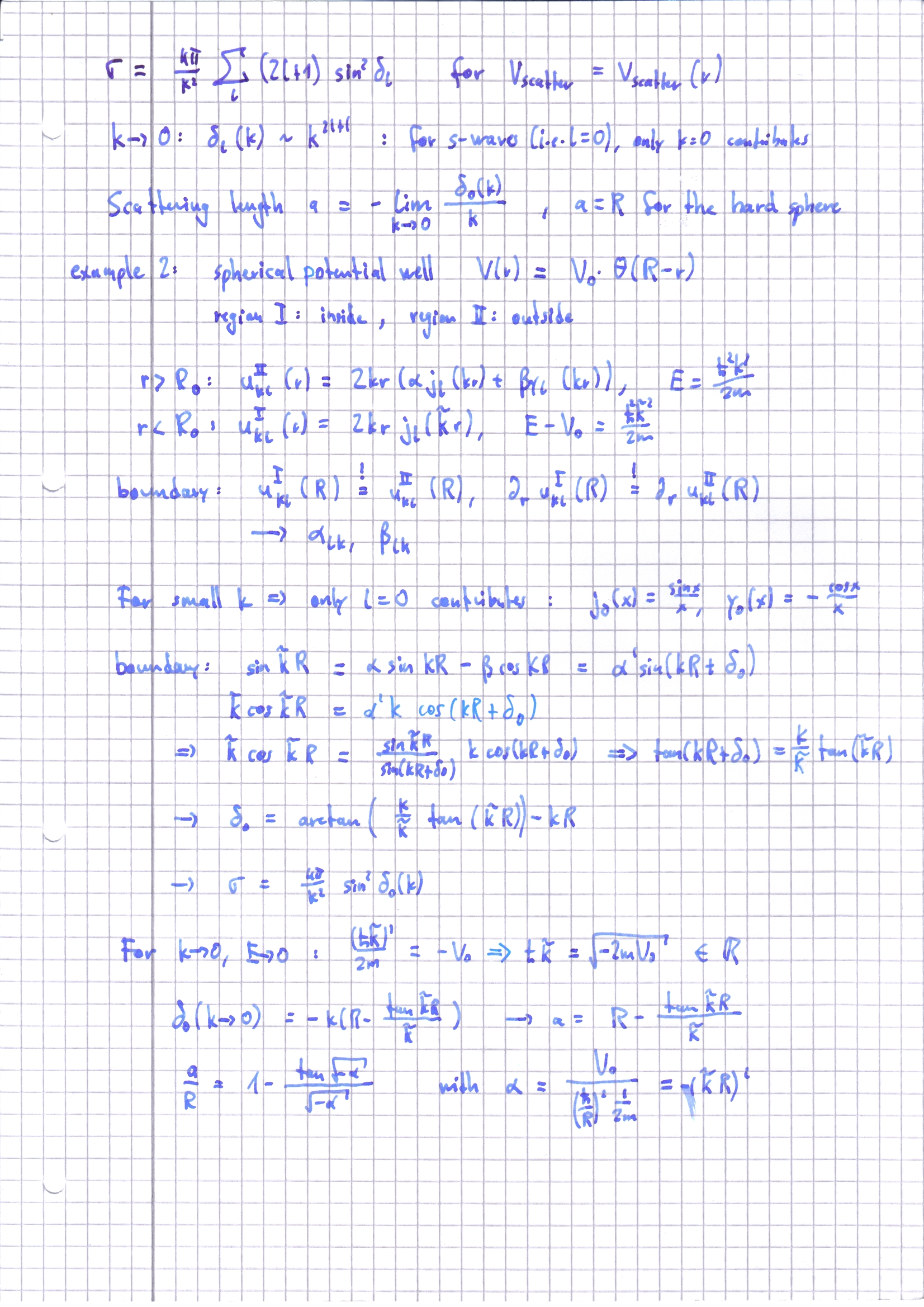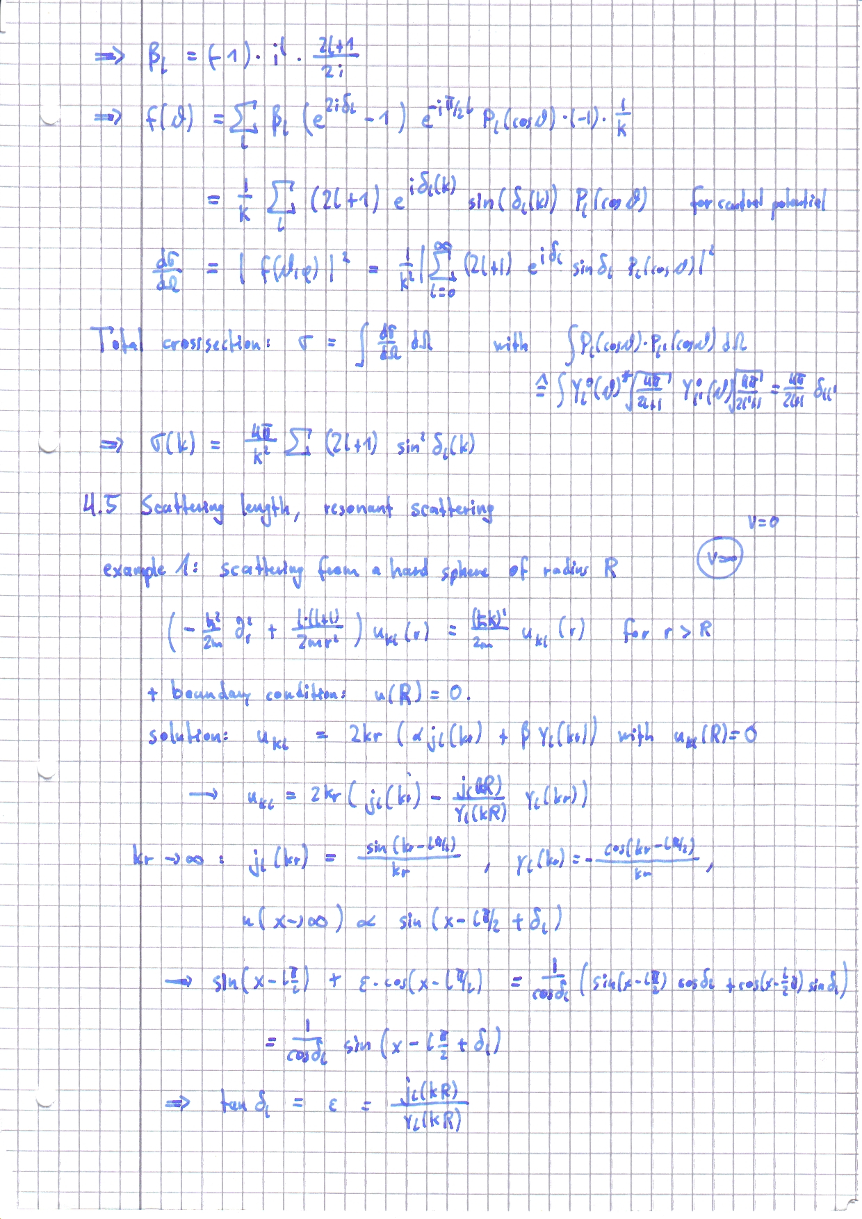 - 2012-12-11: phase shifts and cross section (cont'd), scattering length, resonant scattering, example: hard sphere