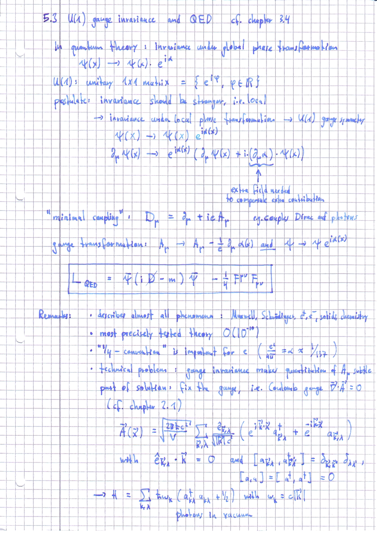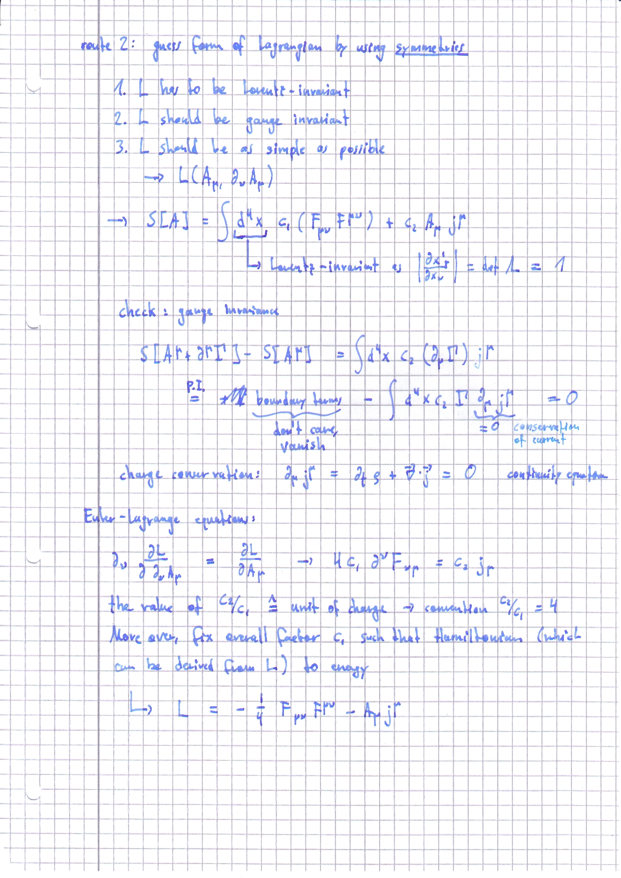 - 2013-01-14: Lagrange formalism (cont'd), Lagrange function of QED, U(1) gauge invariance and QED