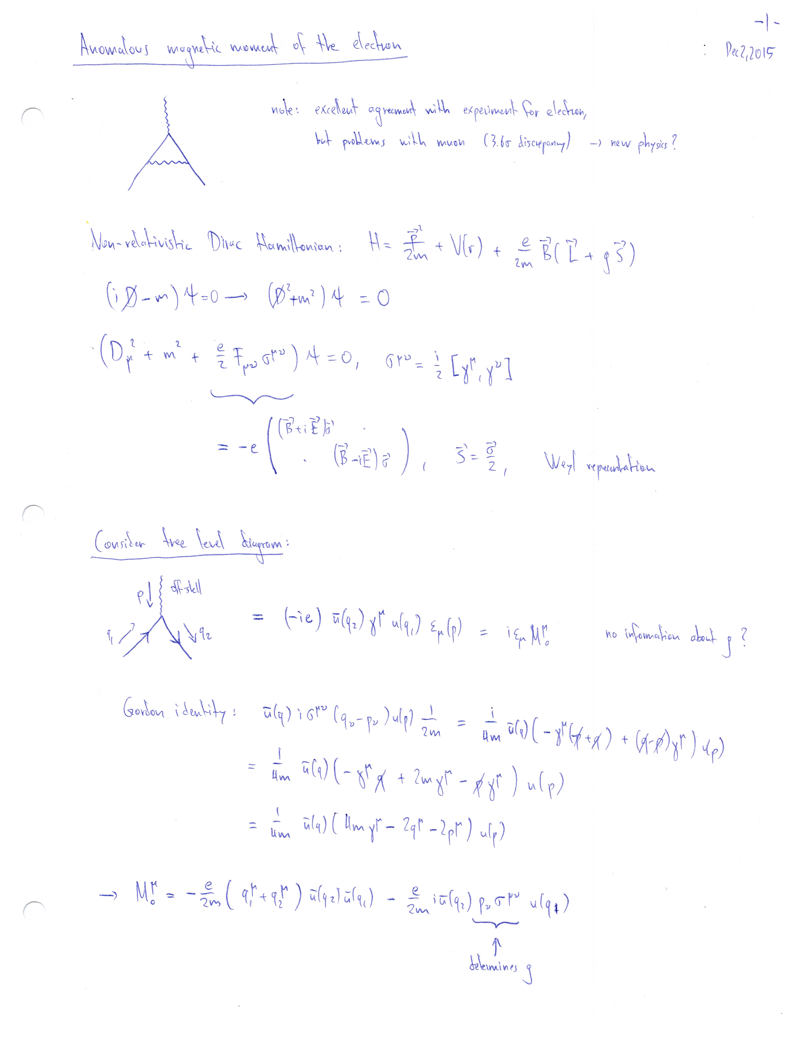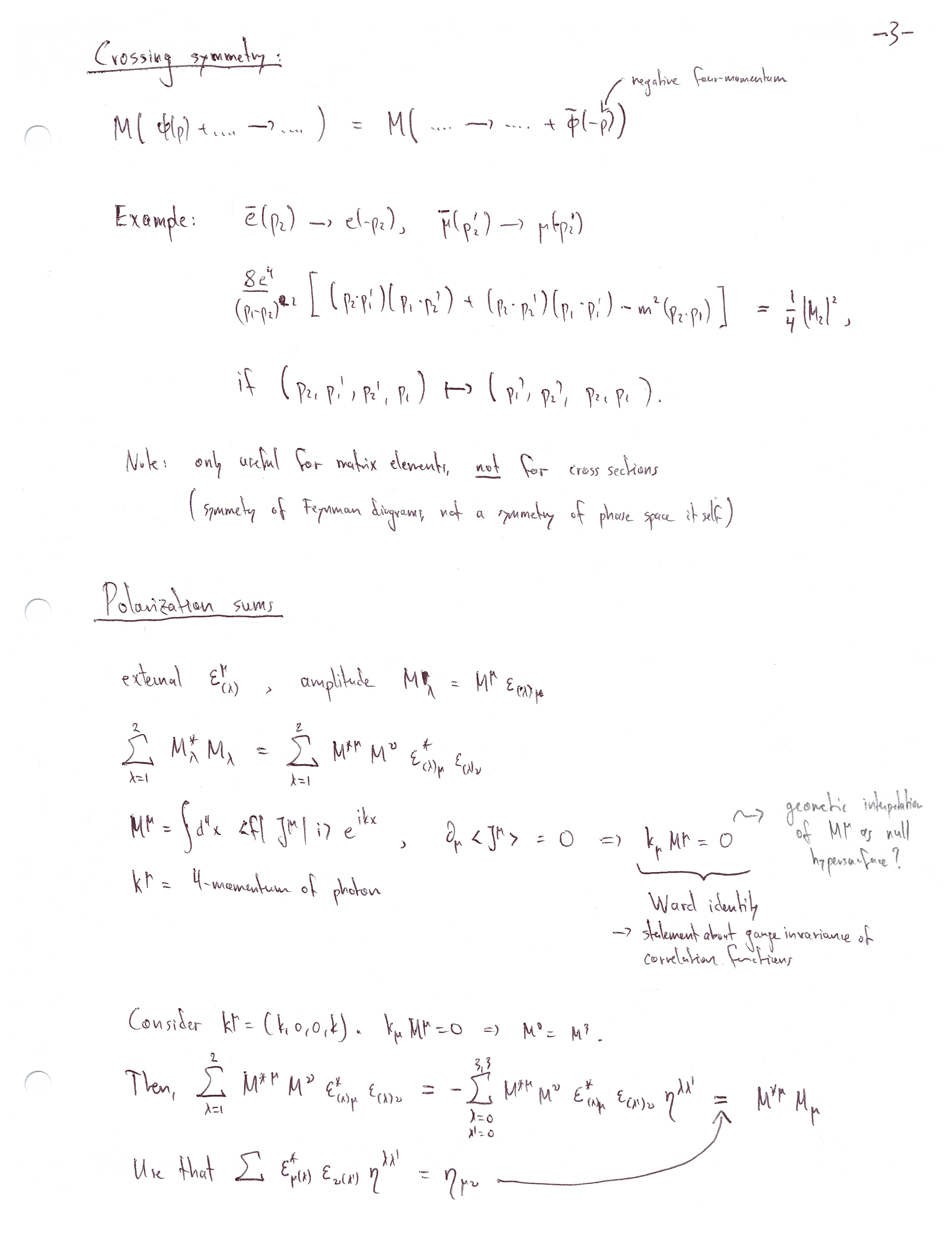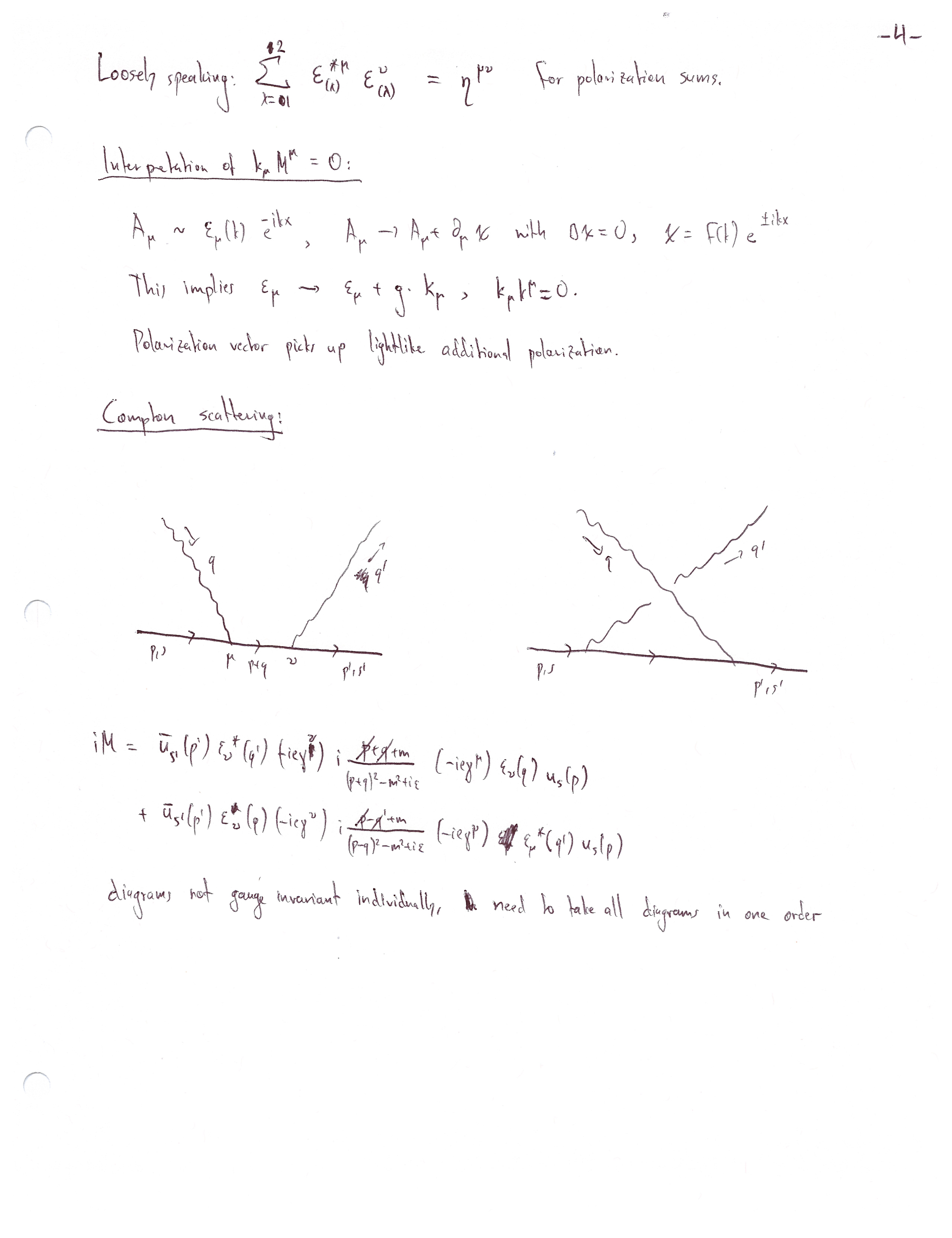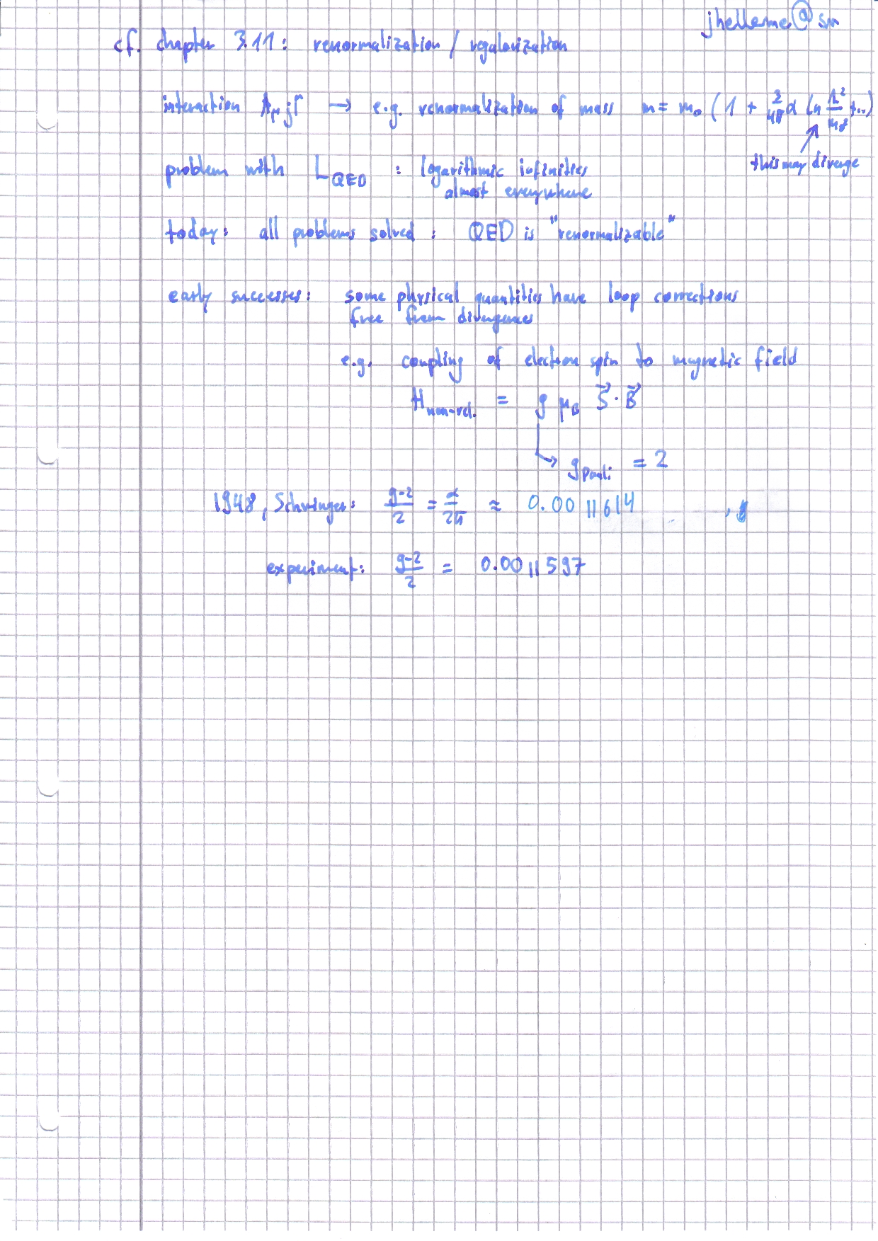 - 2012-12-04: the nonrelativistic limit (cont'd), outlook on QED, renormalization and regularization, scattering theory, scattering cross section