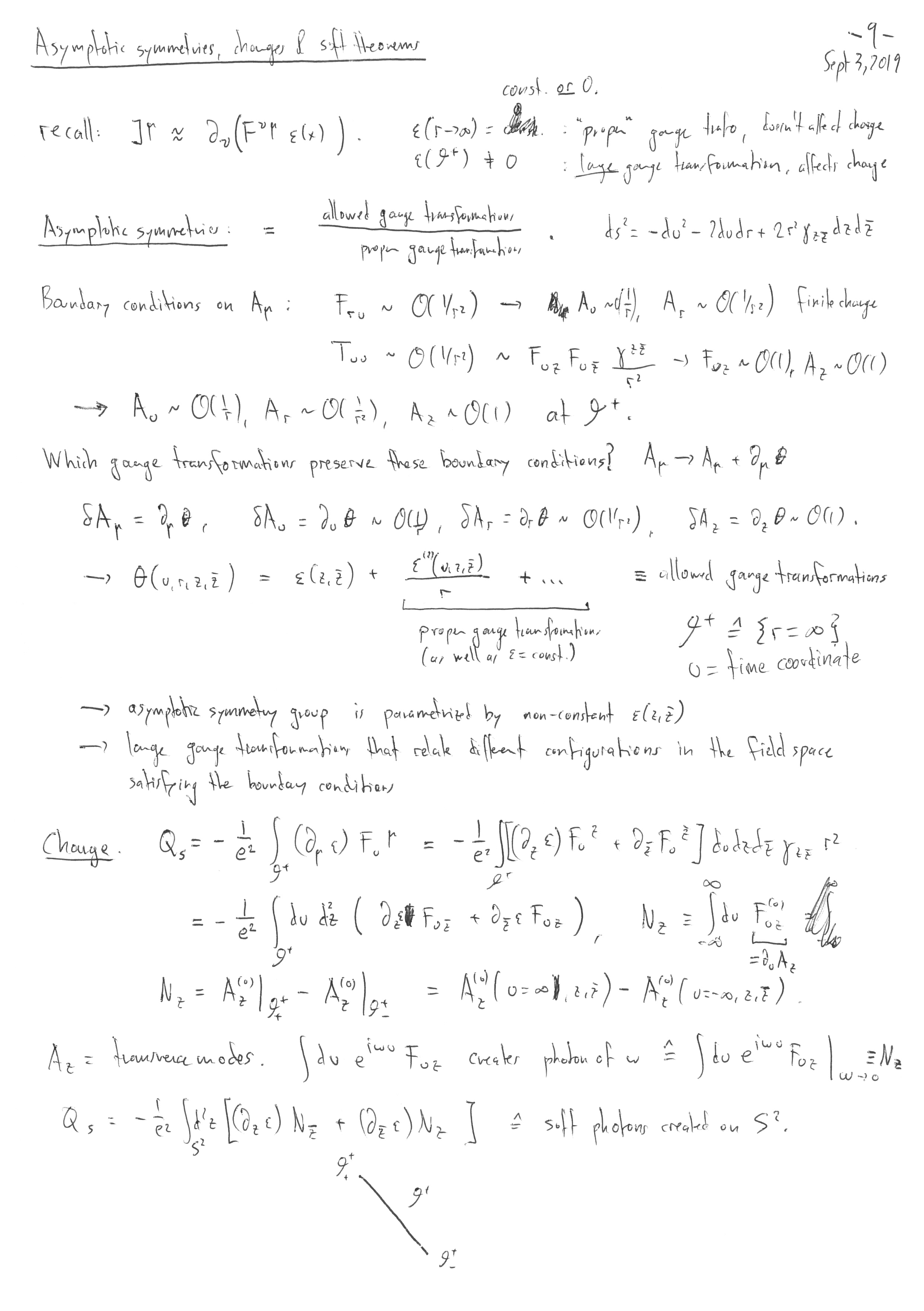 - 2019-09-03: asymptotic symmetries, proper and large gauge transformations, asymptotic charges
