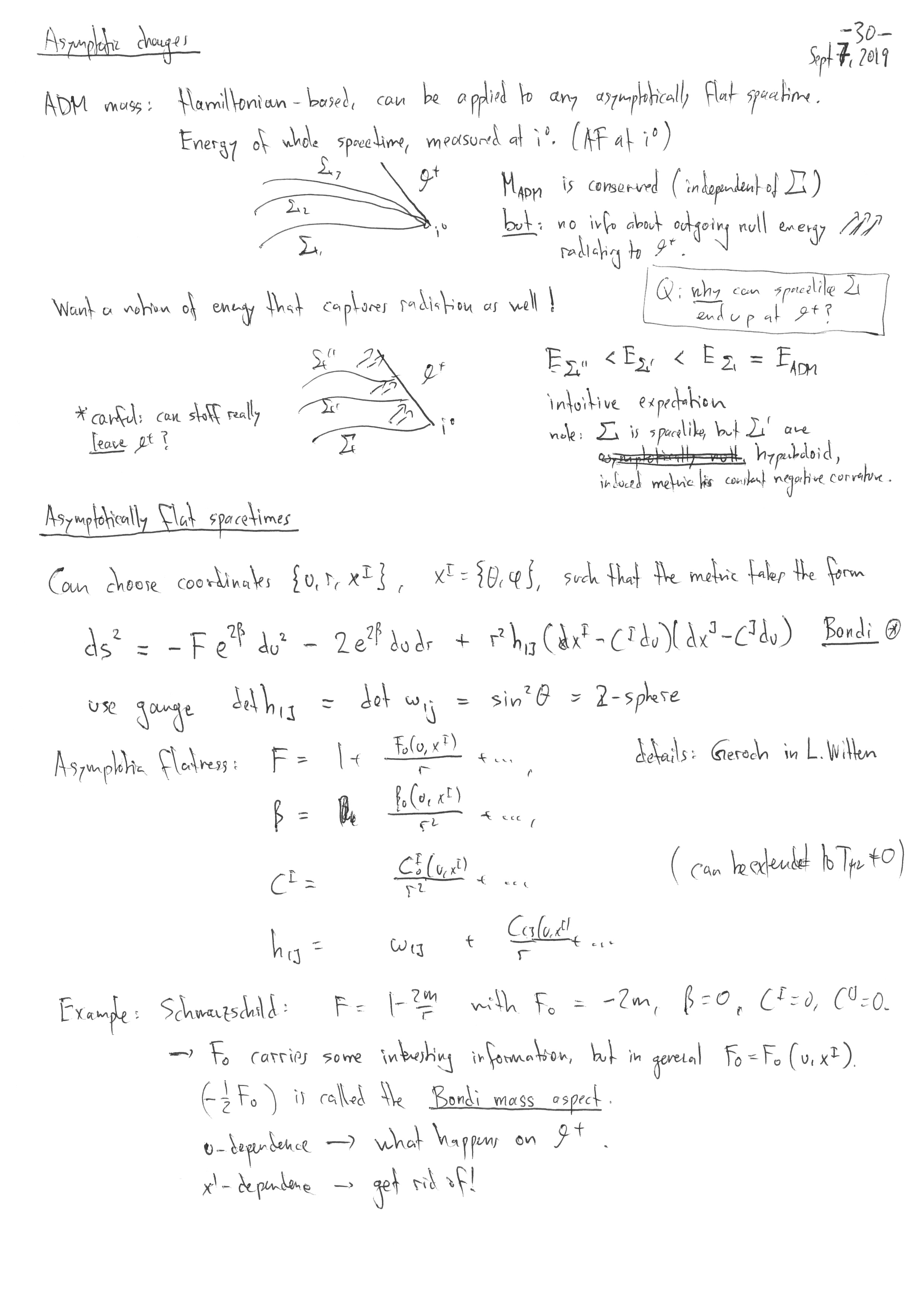 - 2019-09-02: Penrose diagrams, asymptotic flatness, Noether's theorem, electromagnetism