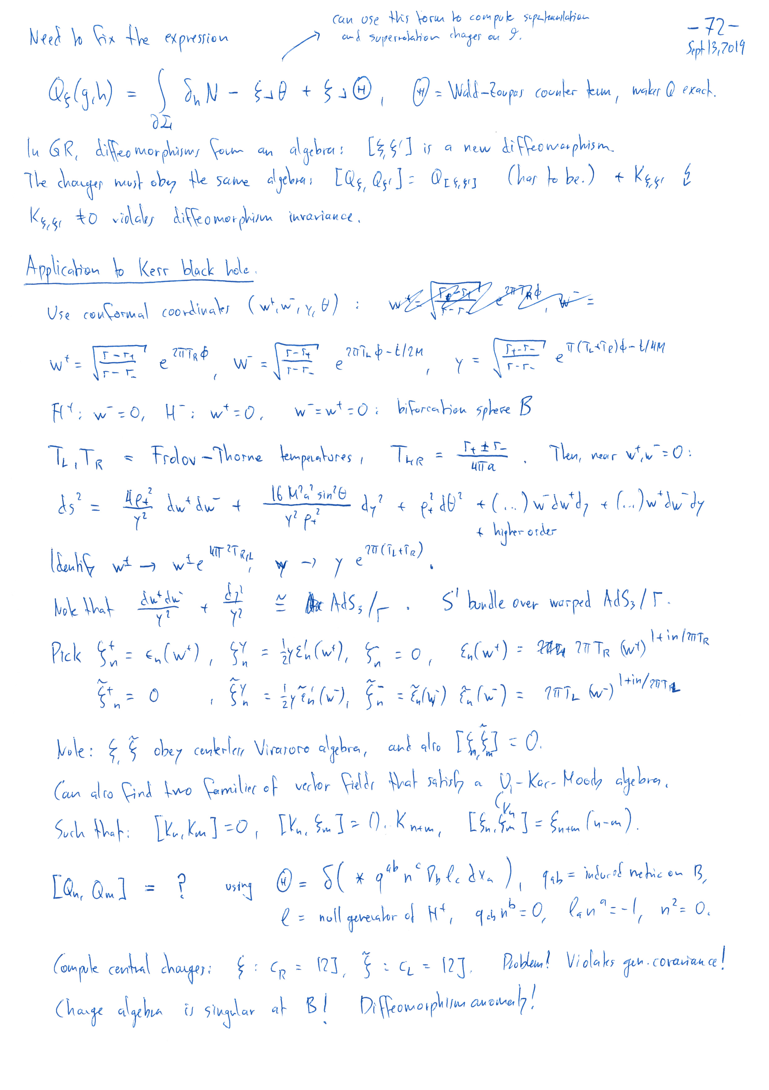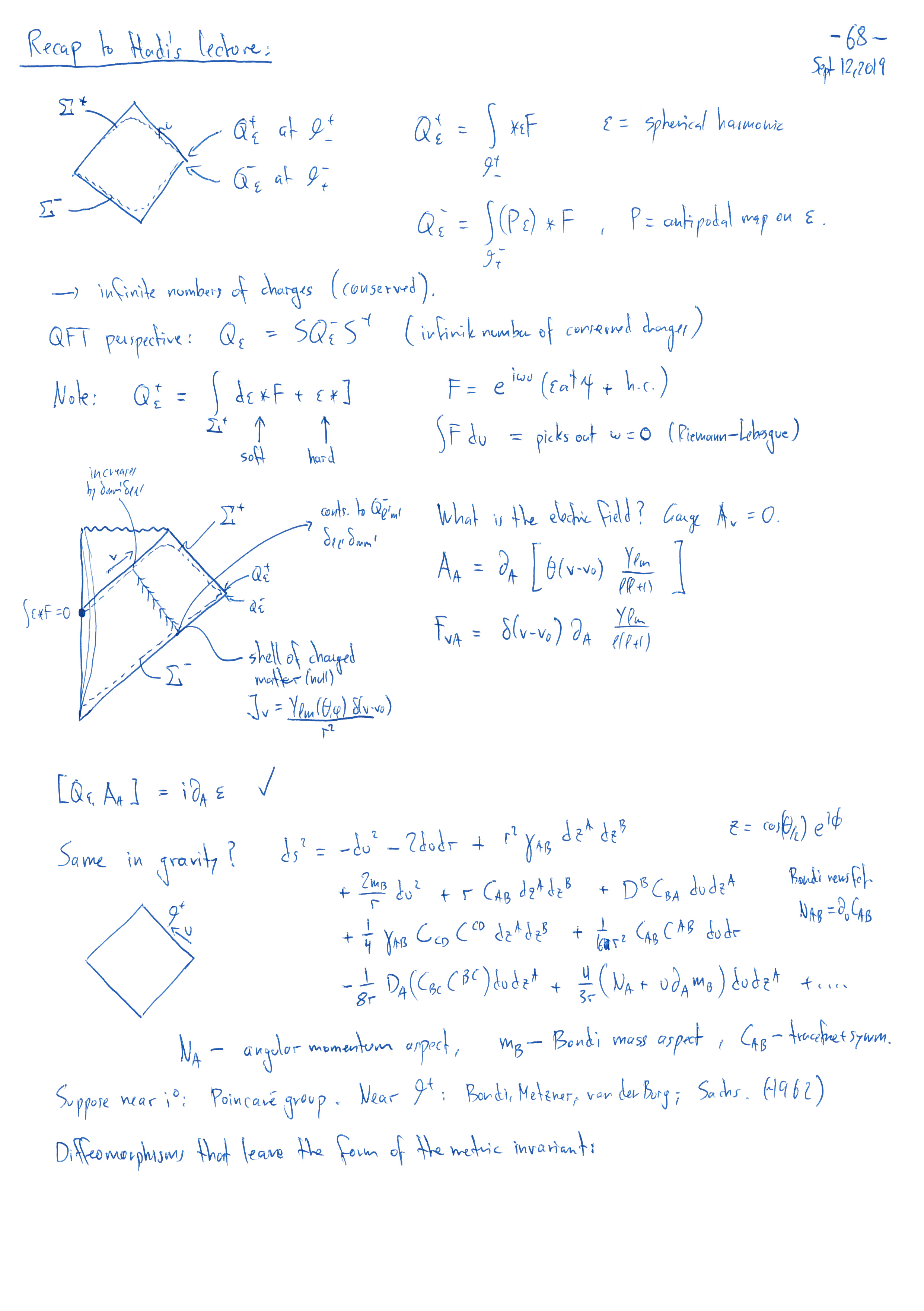 - 2019-09-06: asymptotic charges (cont'd), soft theorem, Komar mass