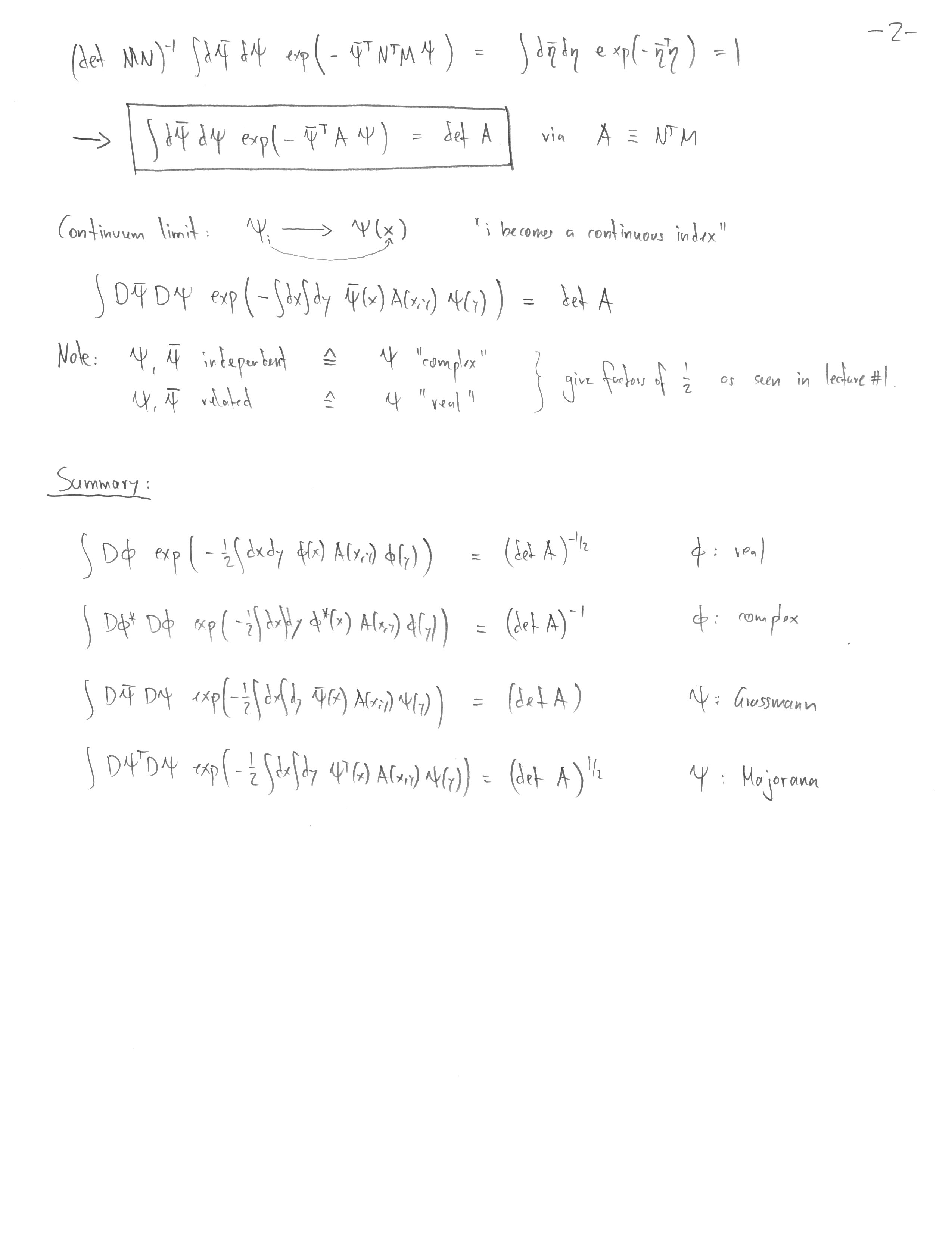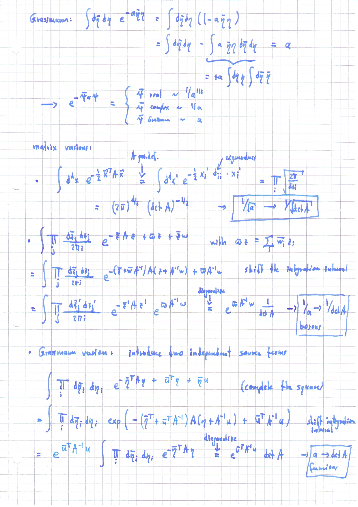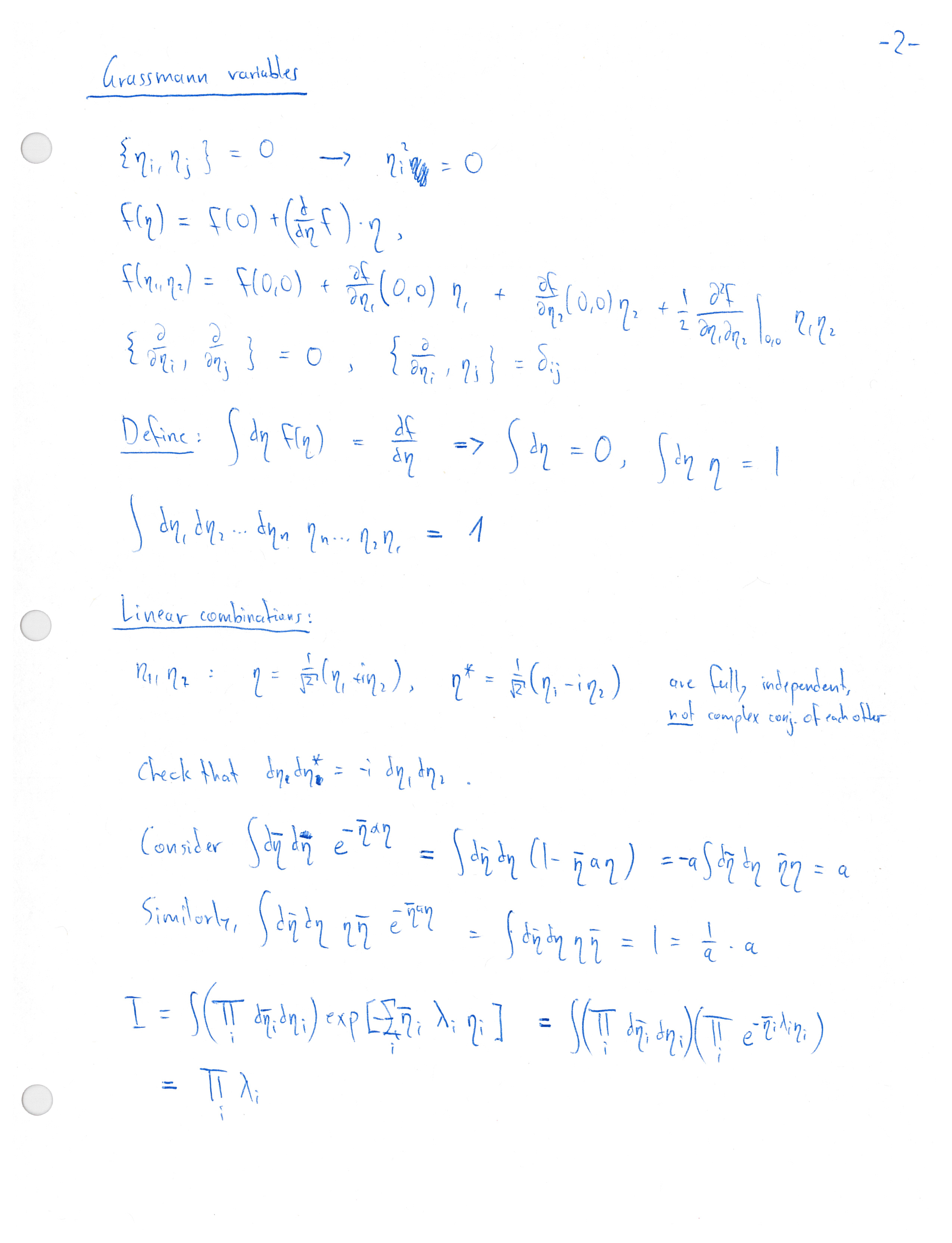 - 2018-02-07: review of Gaussian integrals (cont'd), Grassmann numbers & Grassmann integrals