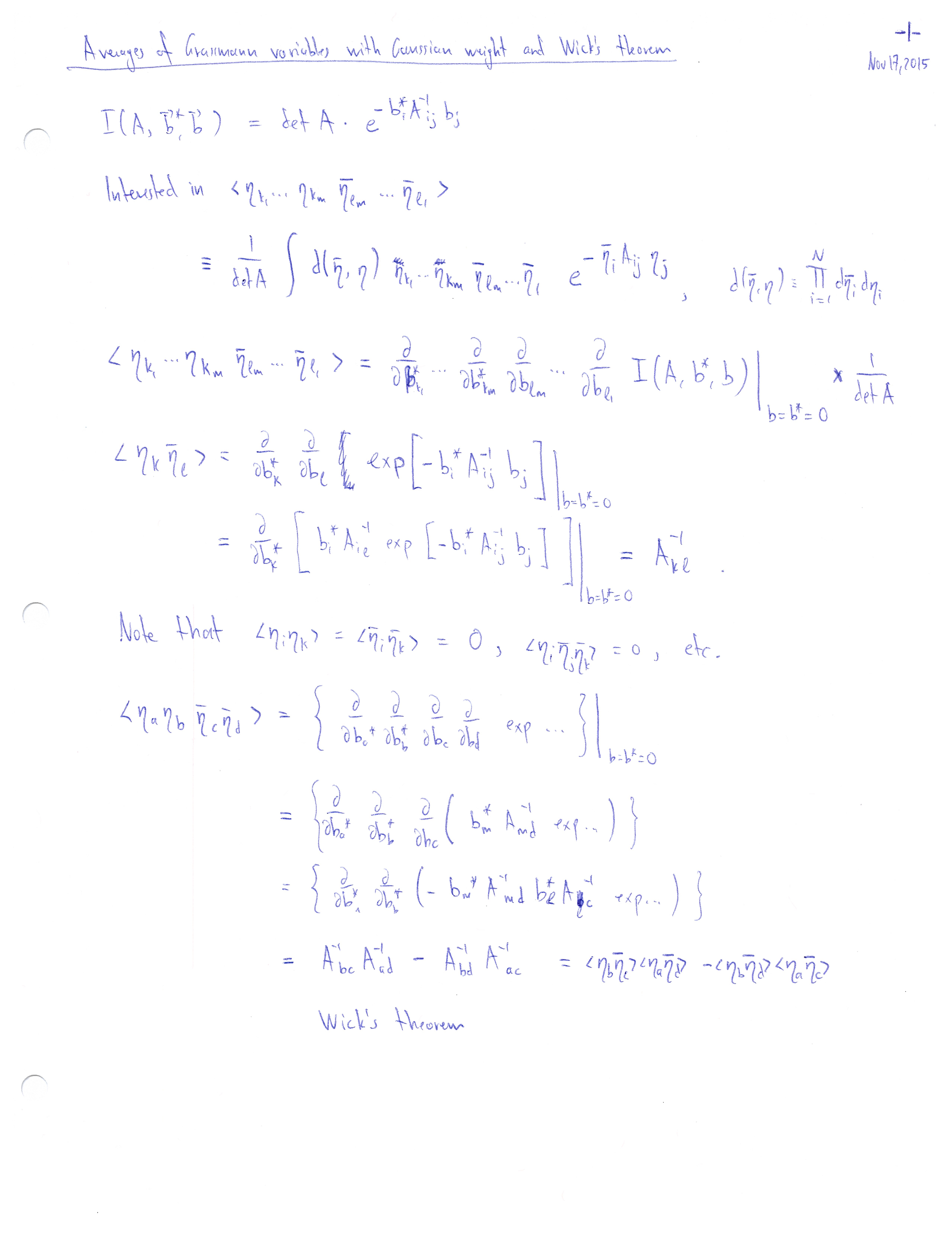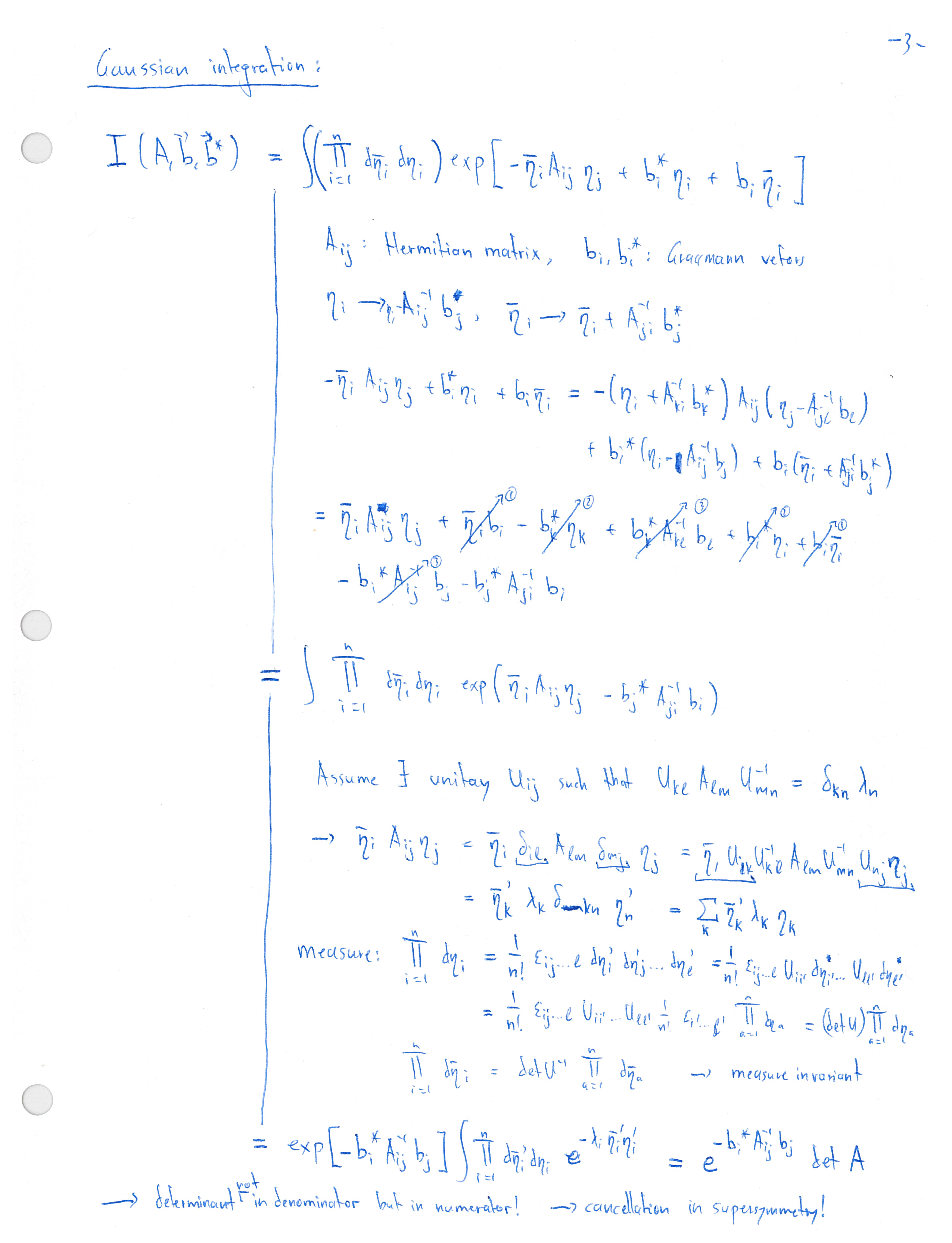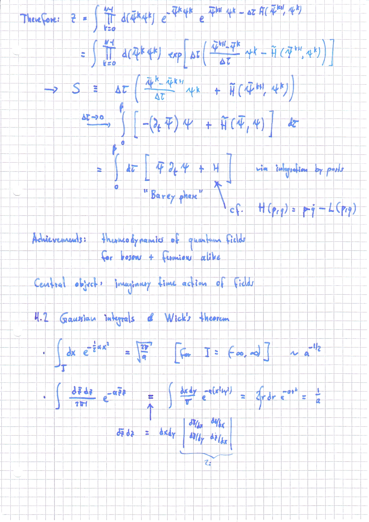 - 2018-02-07: review of Gaussian integrals (cont'd), Grassmann numbers & Grassmann integrals