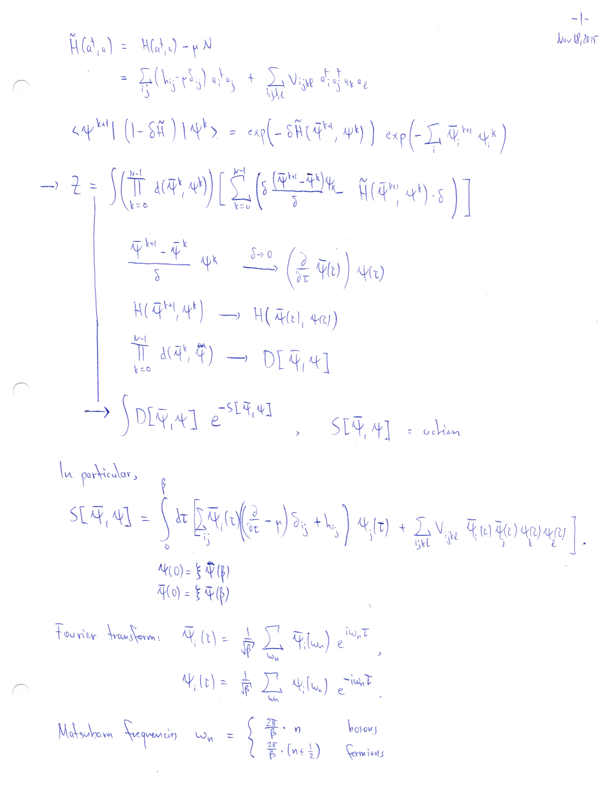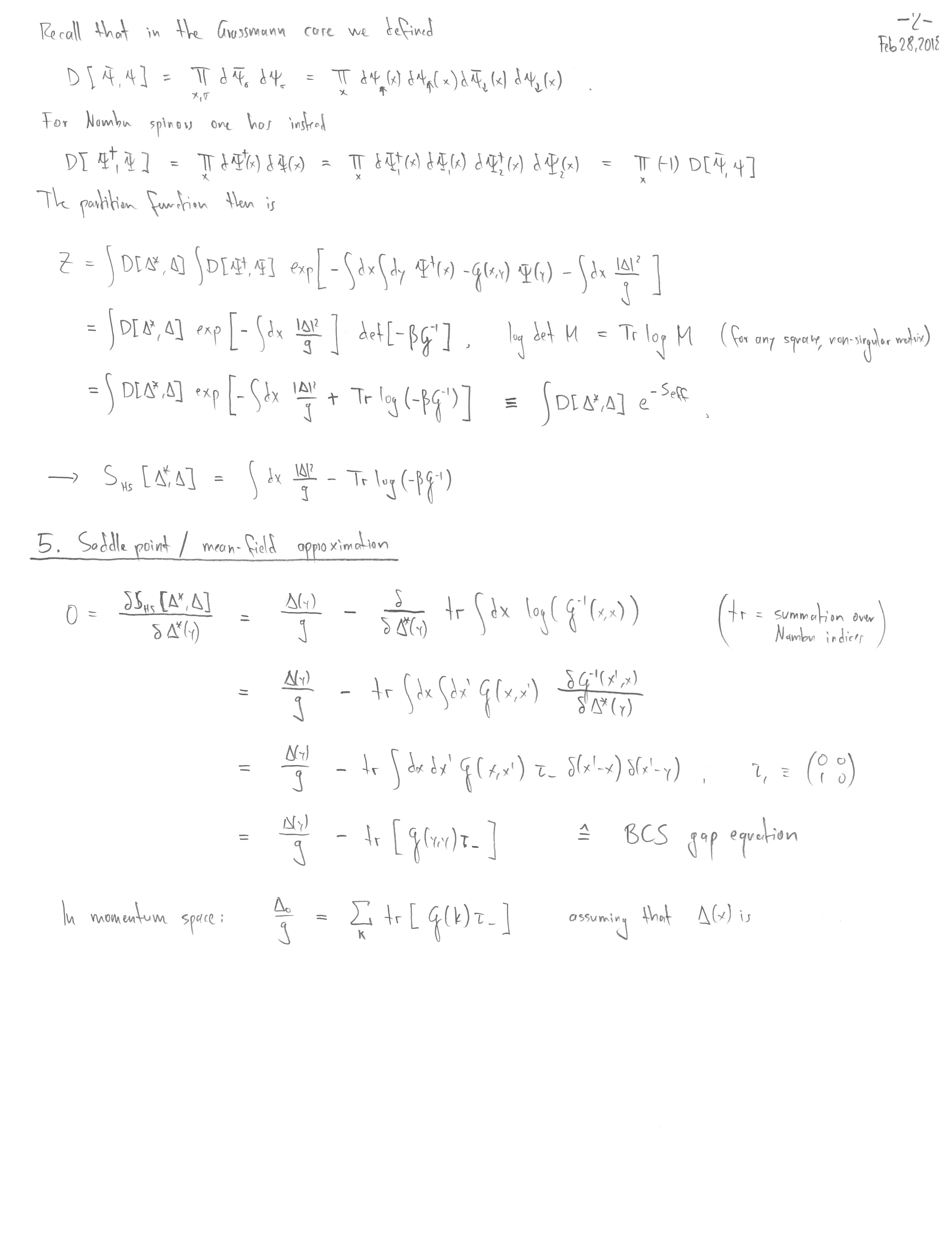 - 2018-02-28: Hubbard–Stratonovich transformation, Nambu Green function, saddle point / mean-field approximation