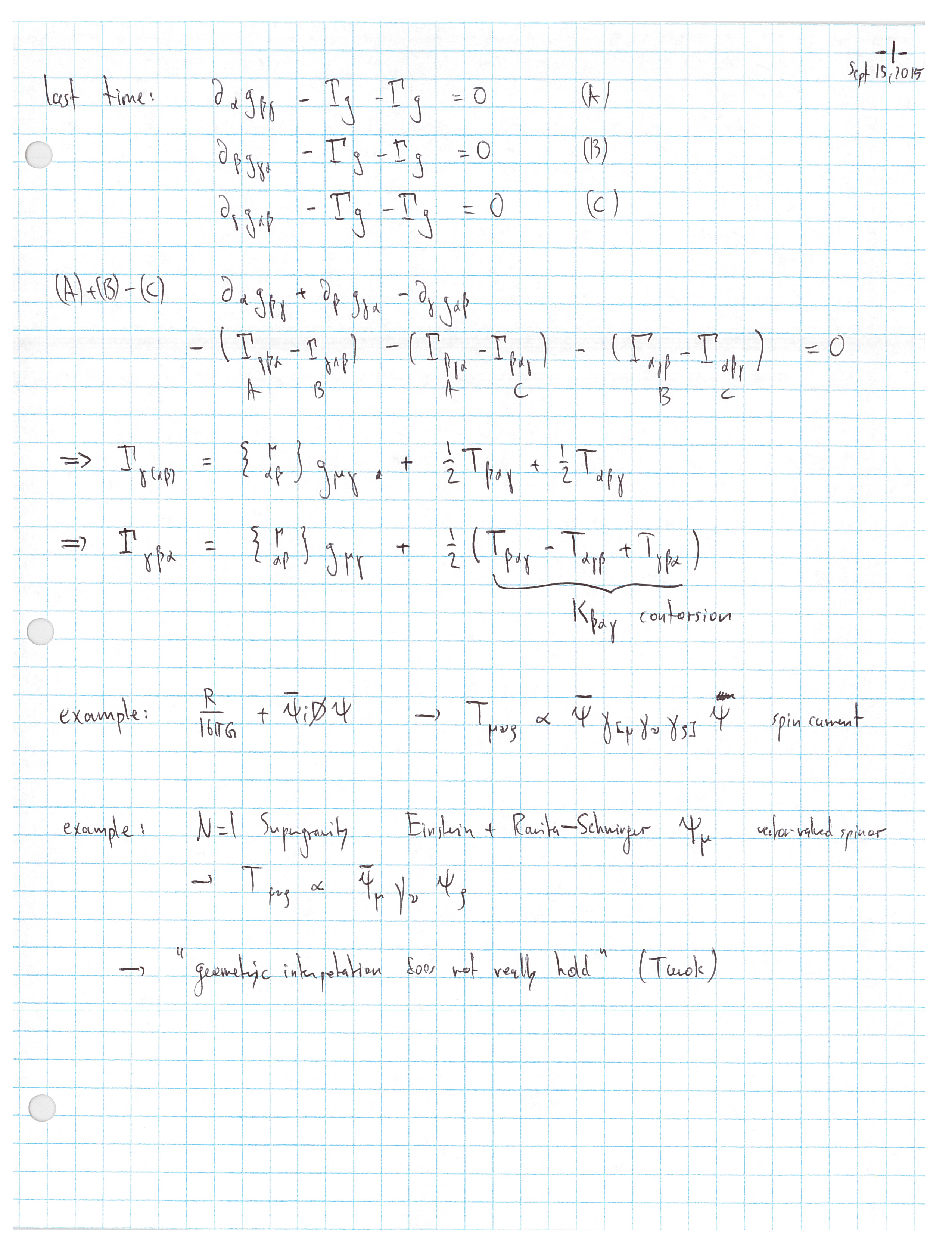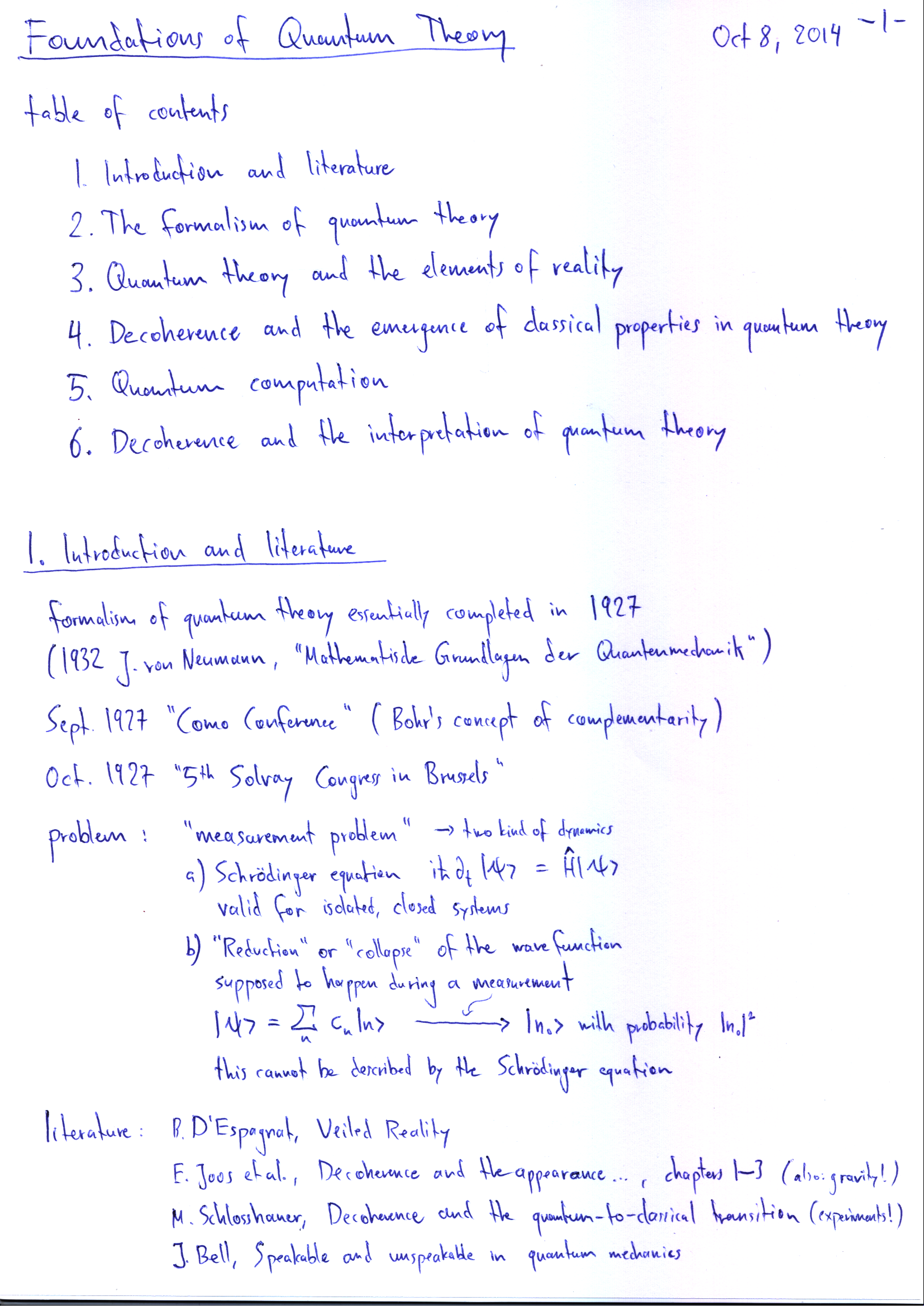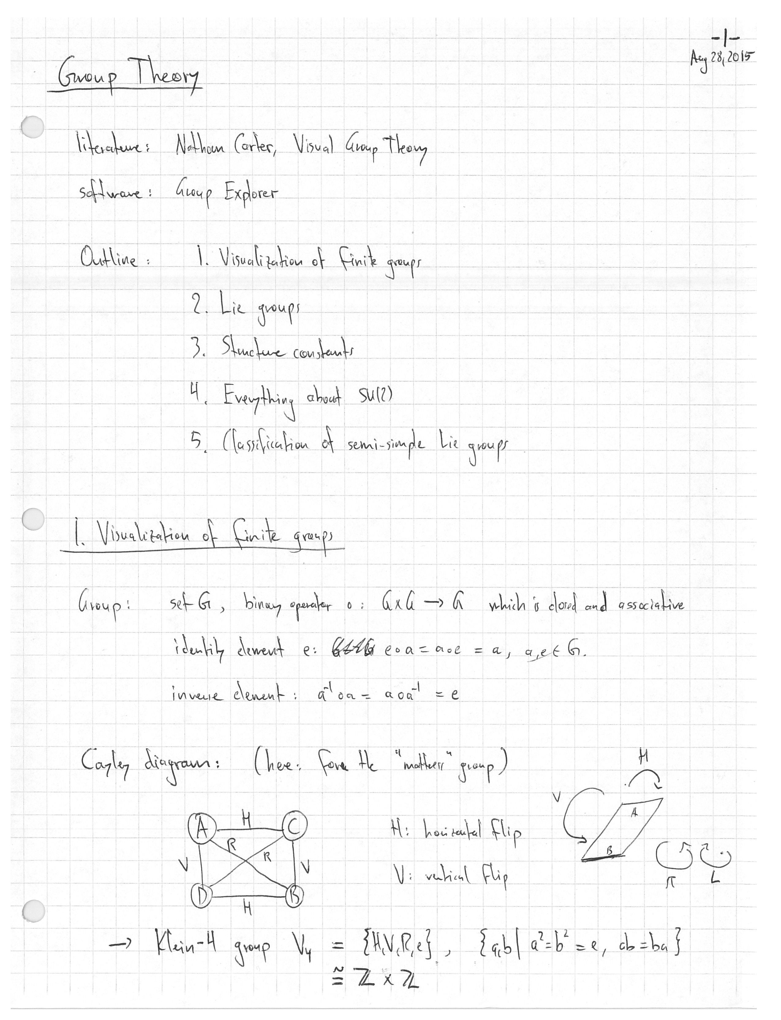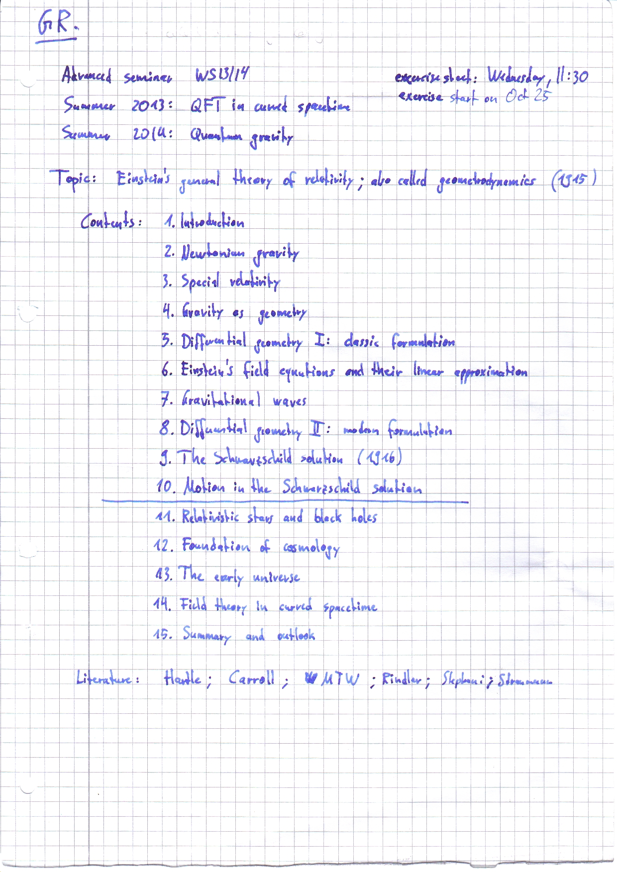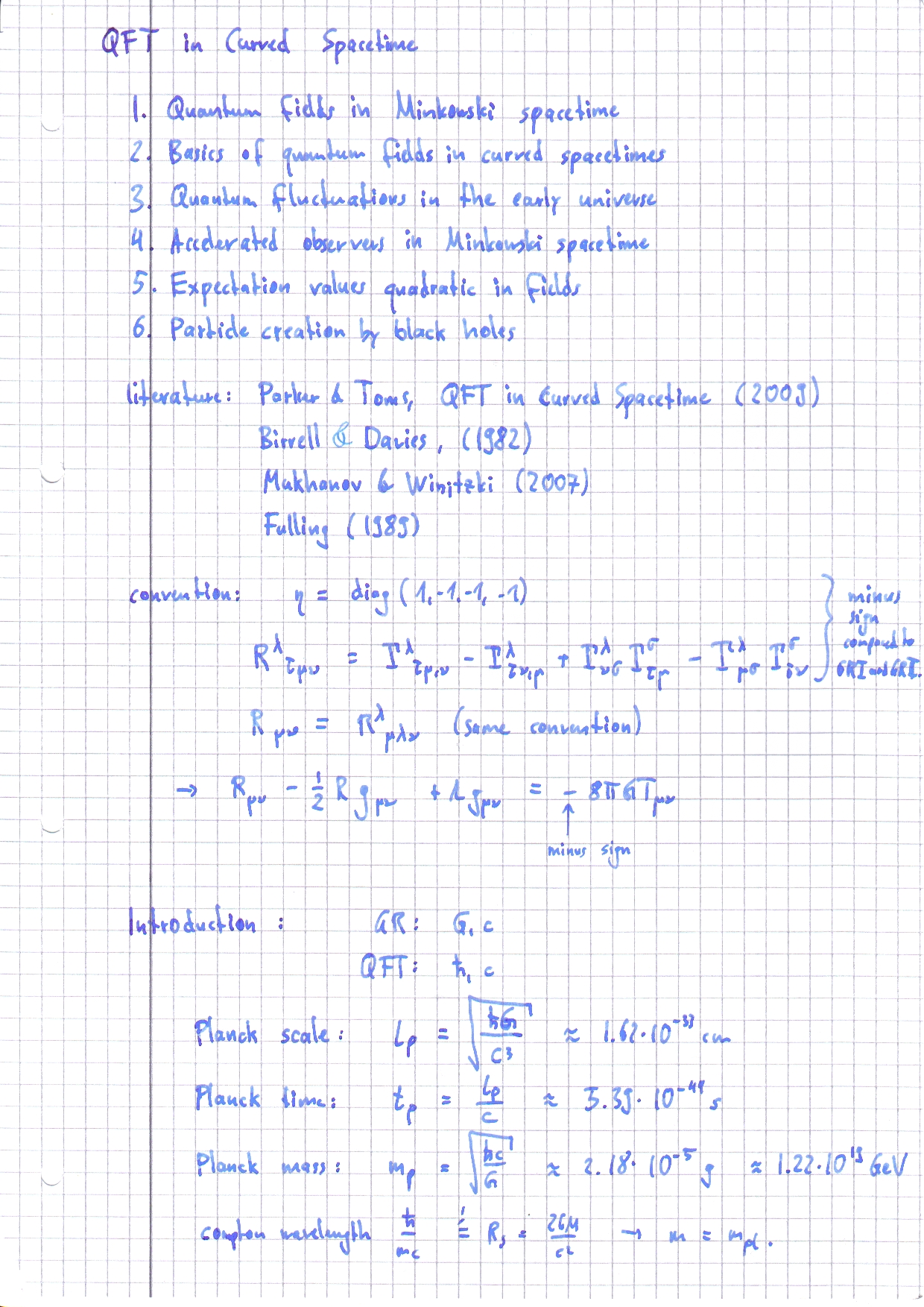 Here you can find handwritten lecture notes for several lectures I attended over the last couple of years at the University of Cologne in Germany, as well as at the Perimeter Institute and the University of Alberta in Canada. Note that these lecture notes may contain typos, and if you find a particularly spectacular one, please feel free to contact me.