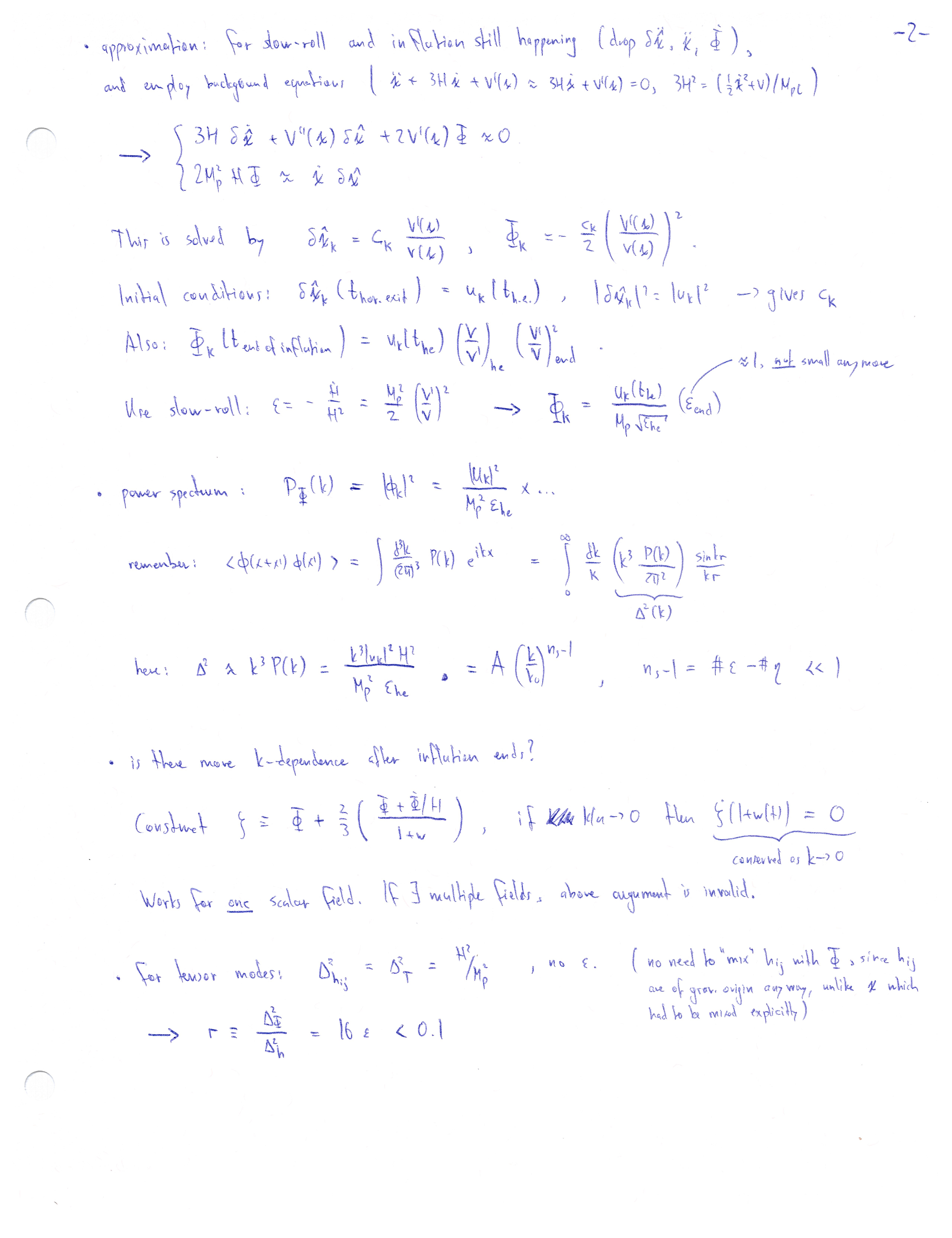 - 2016-04-22: test scalar in FLRW background, inflation in spatially flat gauge, relation to unitary gauge, Weinberg theorem, phenomenology, amplitude and tilt