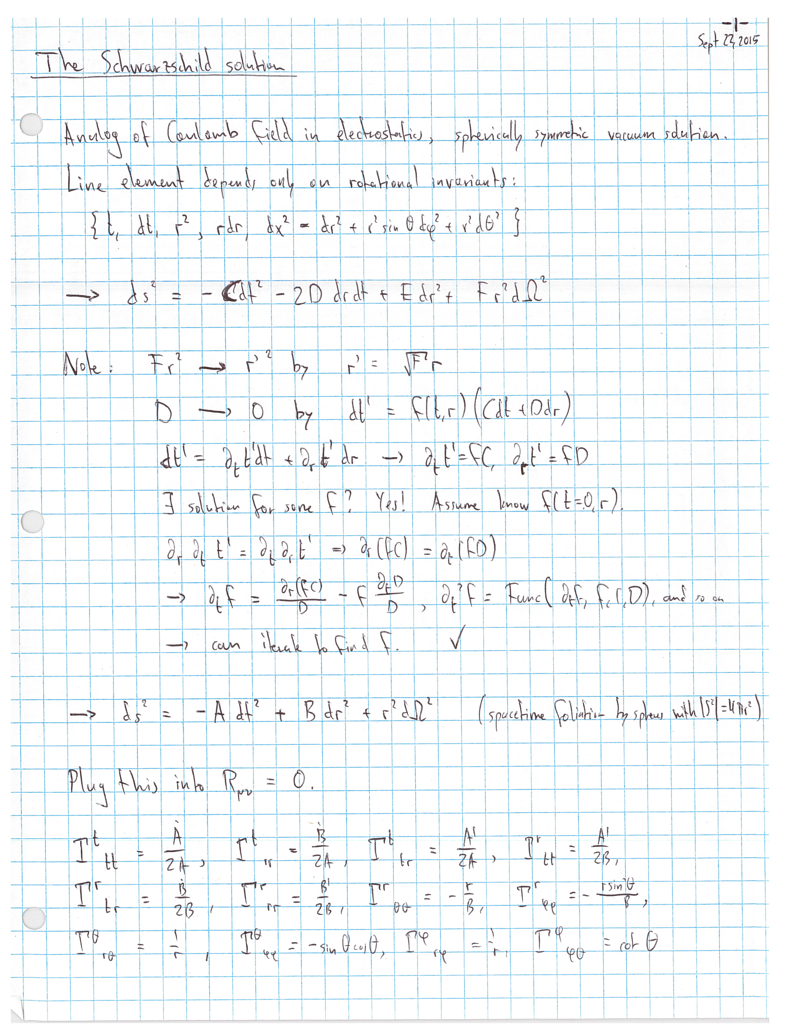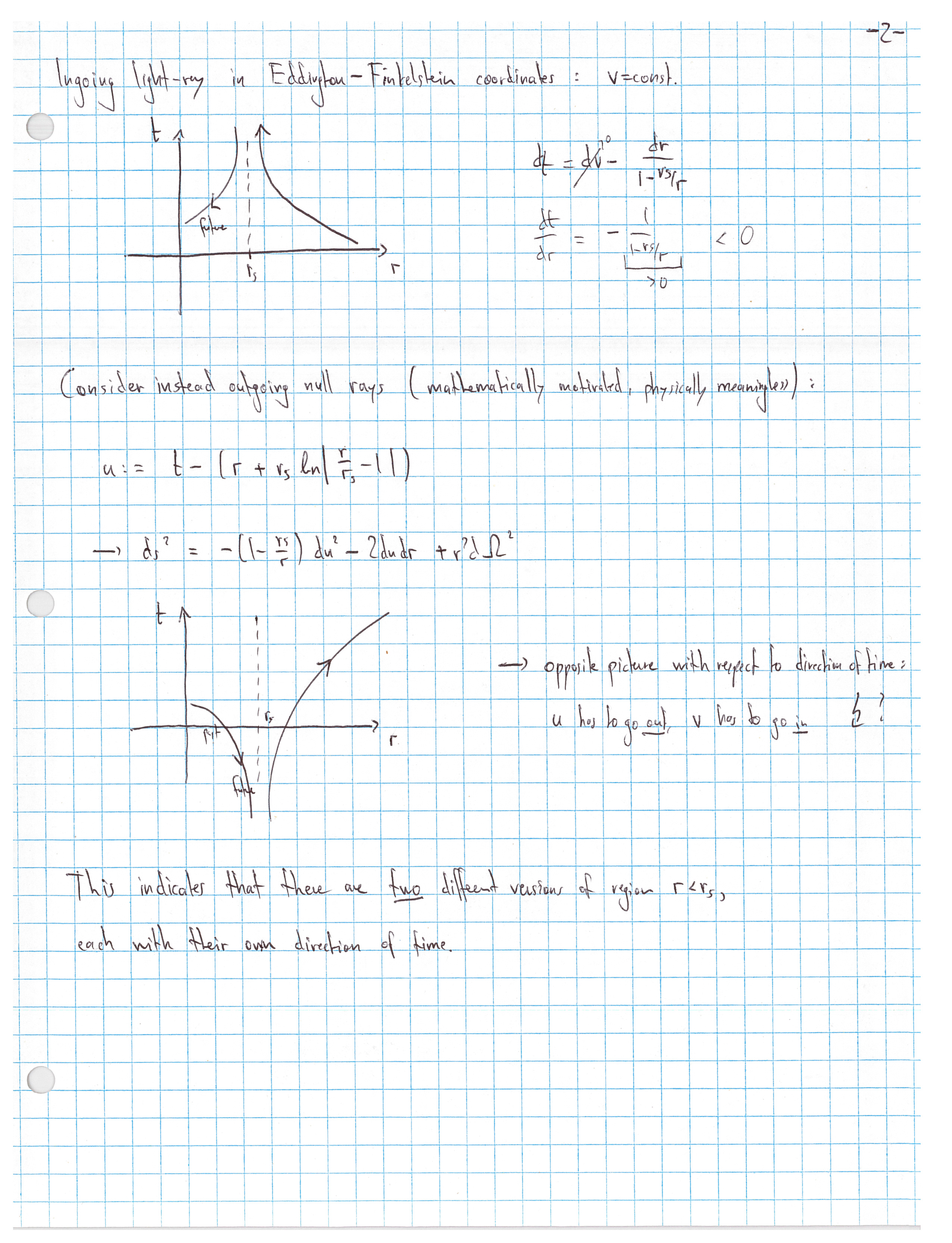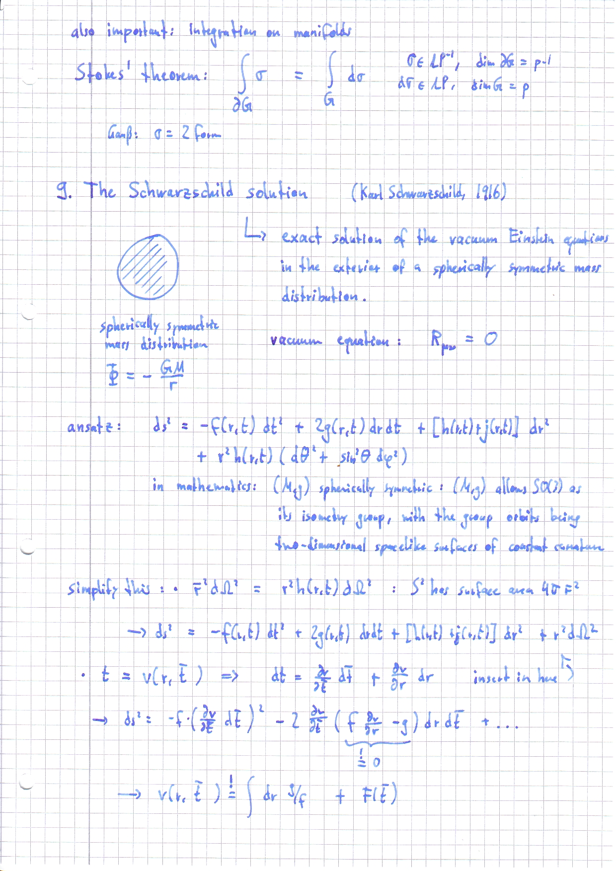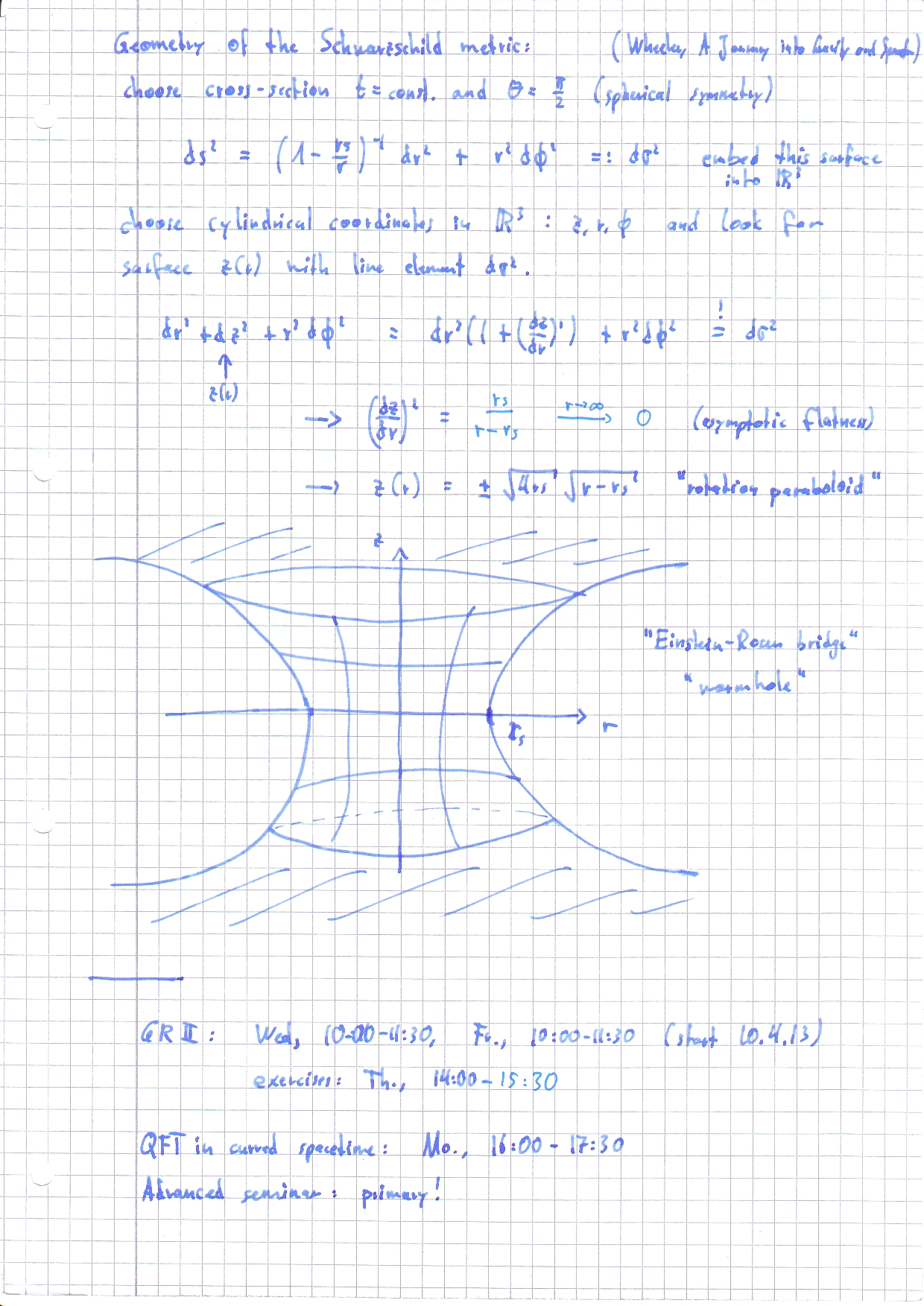 - 2013-01-30: the Schwarzschild solution (cont'd), geometry of the Schwarzschild metric