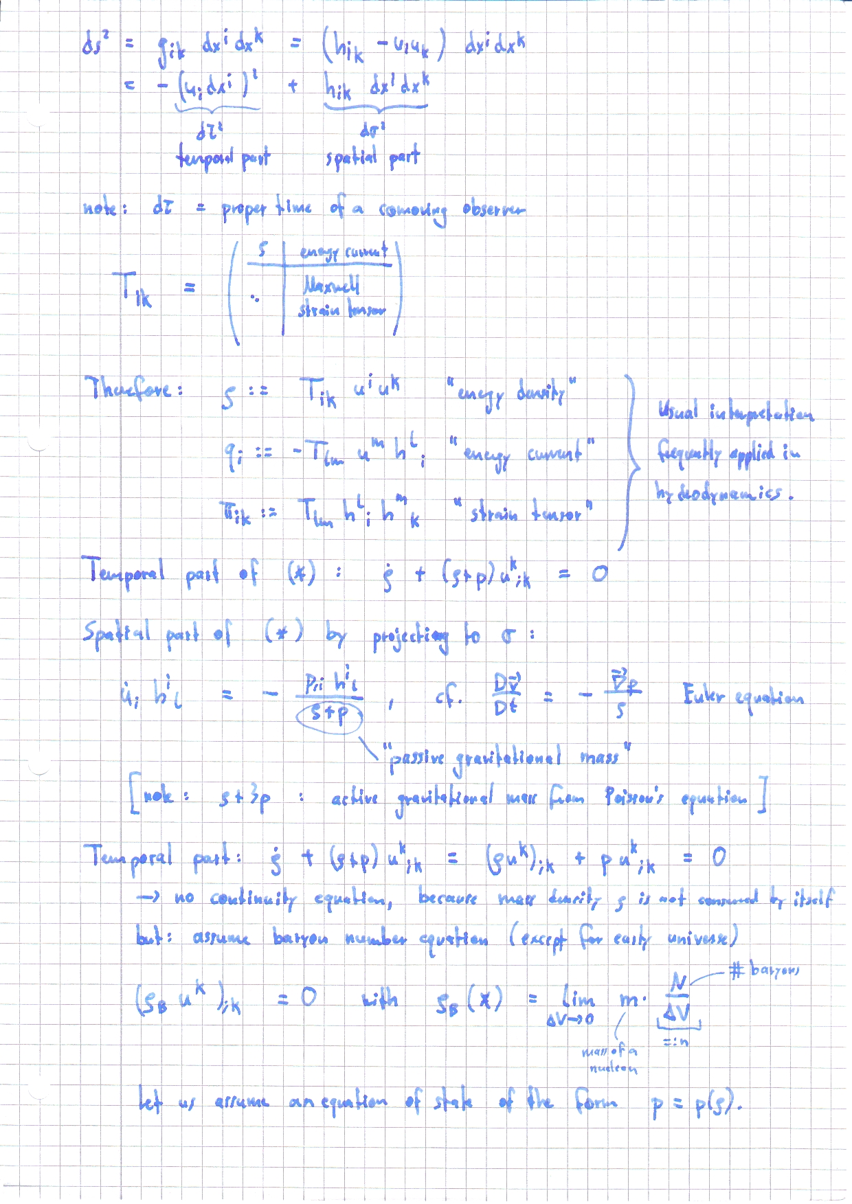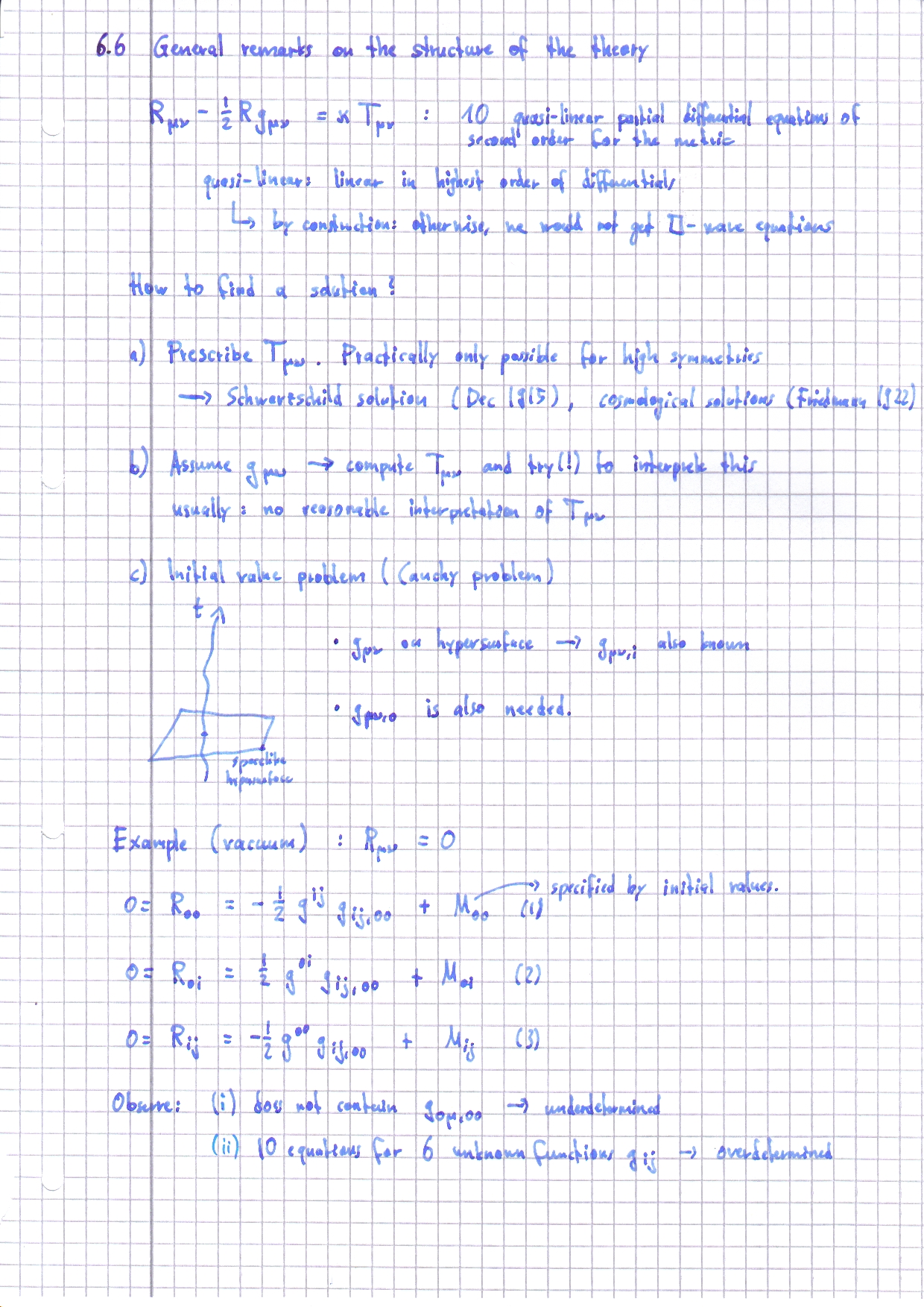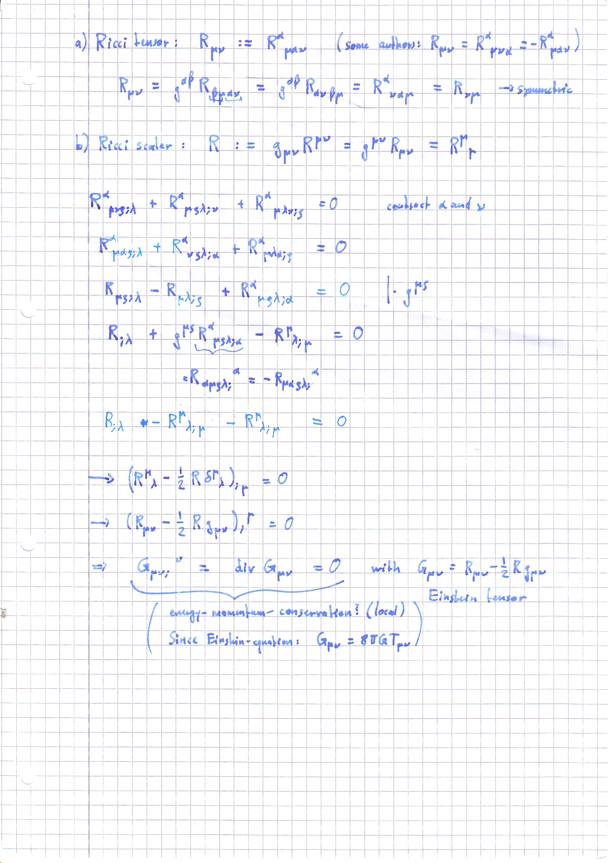 - 2012-12-05: Inclusion of non-gravitational fields, some important examples for the energy-momentum tensor, dust, ideal fluid, electromagnetism