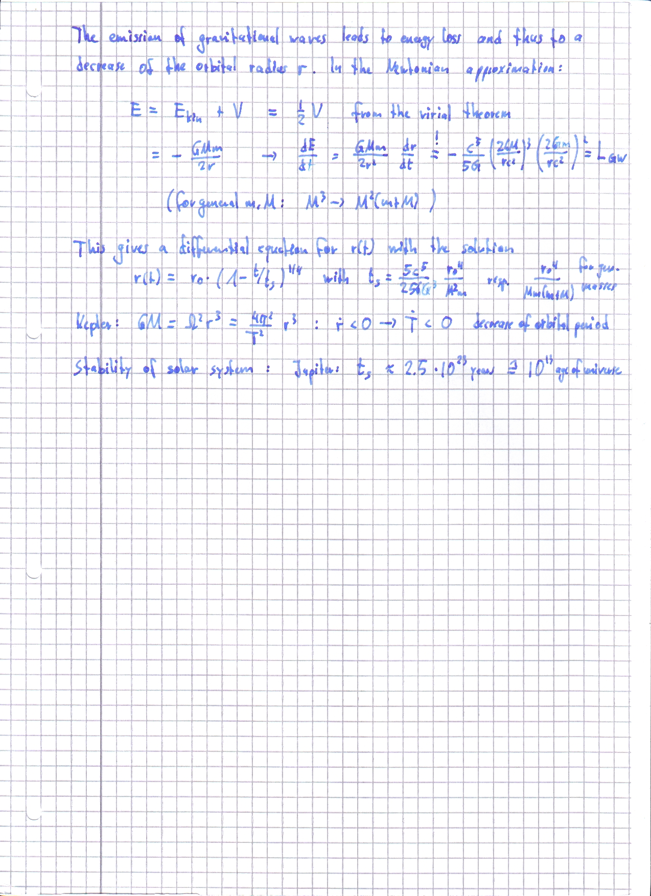 - 2013-01-07: emission of gravitational waves, dipole radiation (vanishes), quadrupole radiation