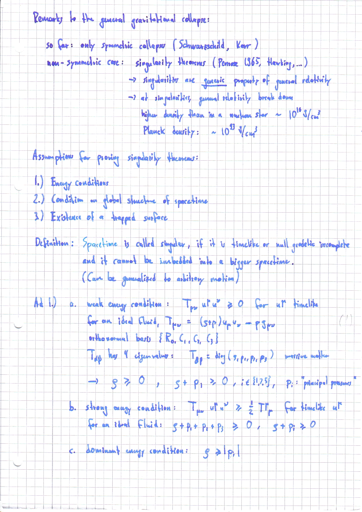 - 2013-05-29: rotating black holes (Kerr solution) (cont'd), gravitational collapse on black holes