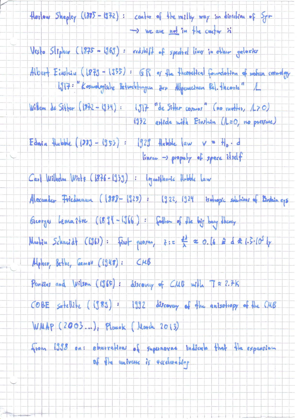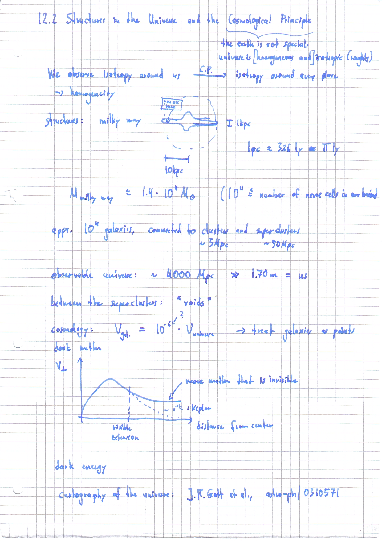 - 2013-06-07: black holes in astrophyics (cont'd), foundations of cosmology, a brief history of cosmology, structures in the universe and the cosmological principle