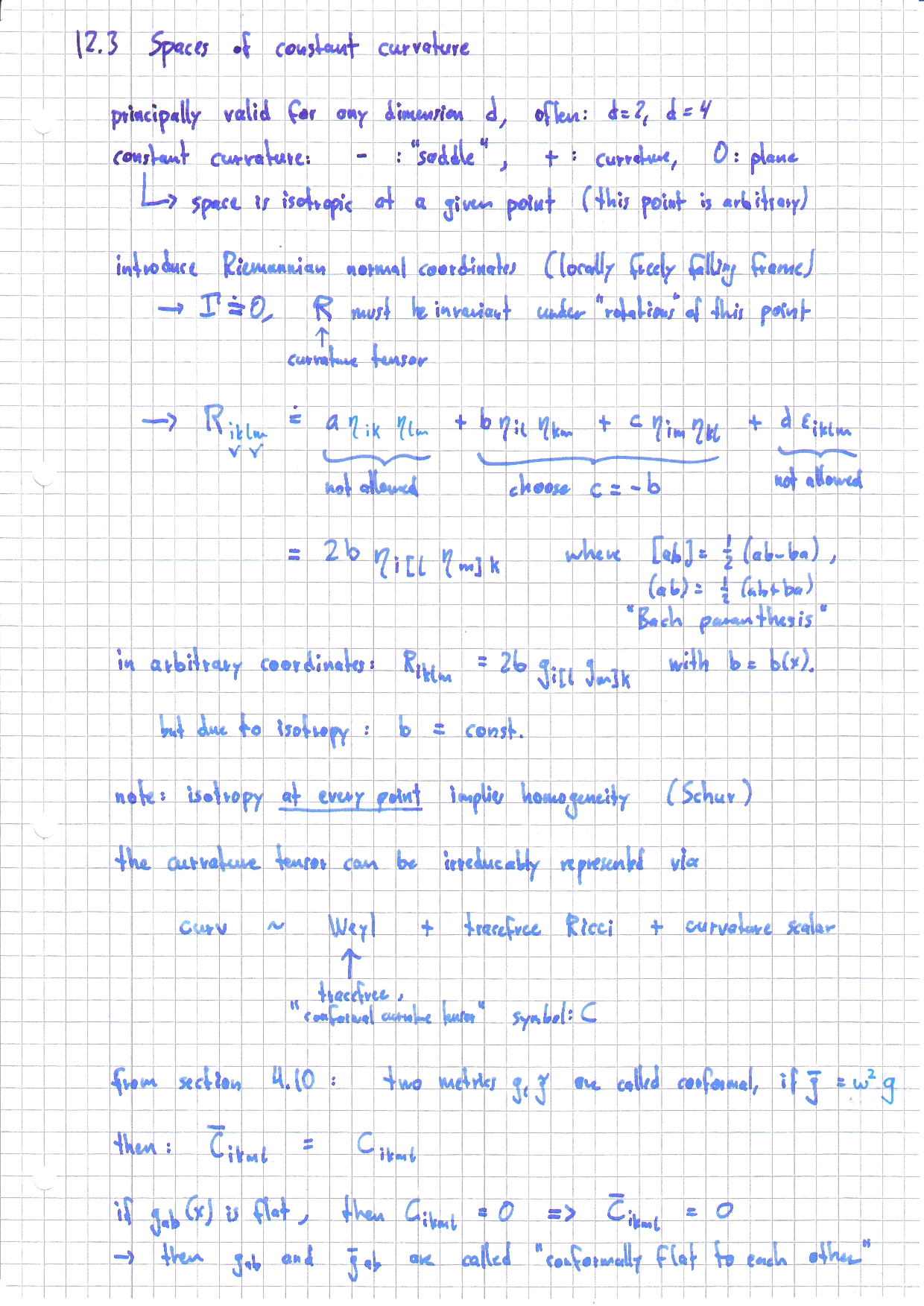- 2012-11-14: tensor analysis (cont'd), the Riemann curvature tensor, the Ricci tensor, the Ricci scalar