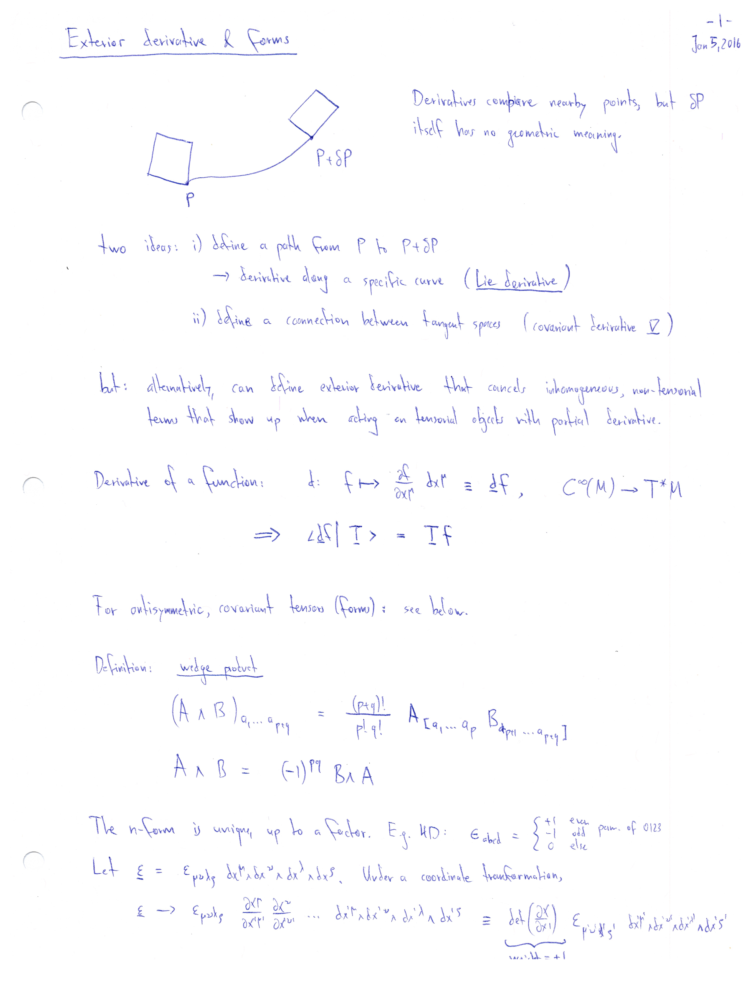 - 2013-01-21: exterior algebra (cont'd), exterior p-forms