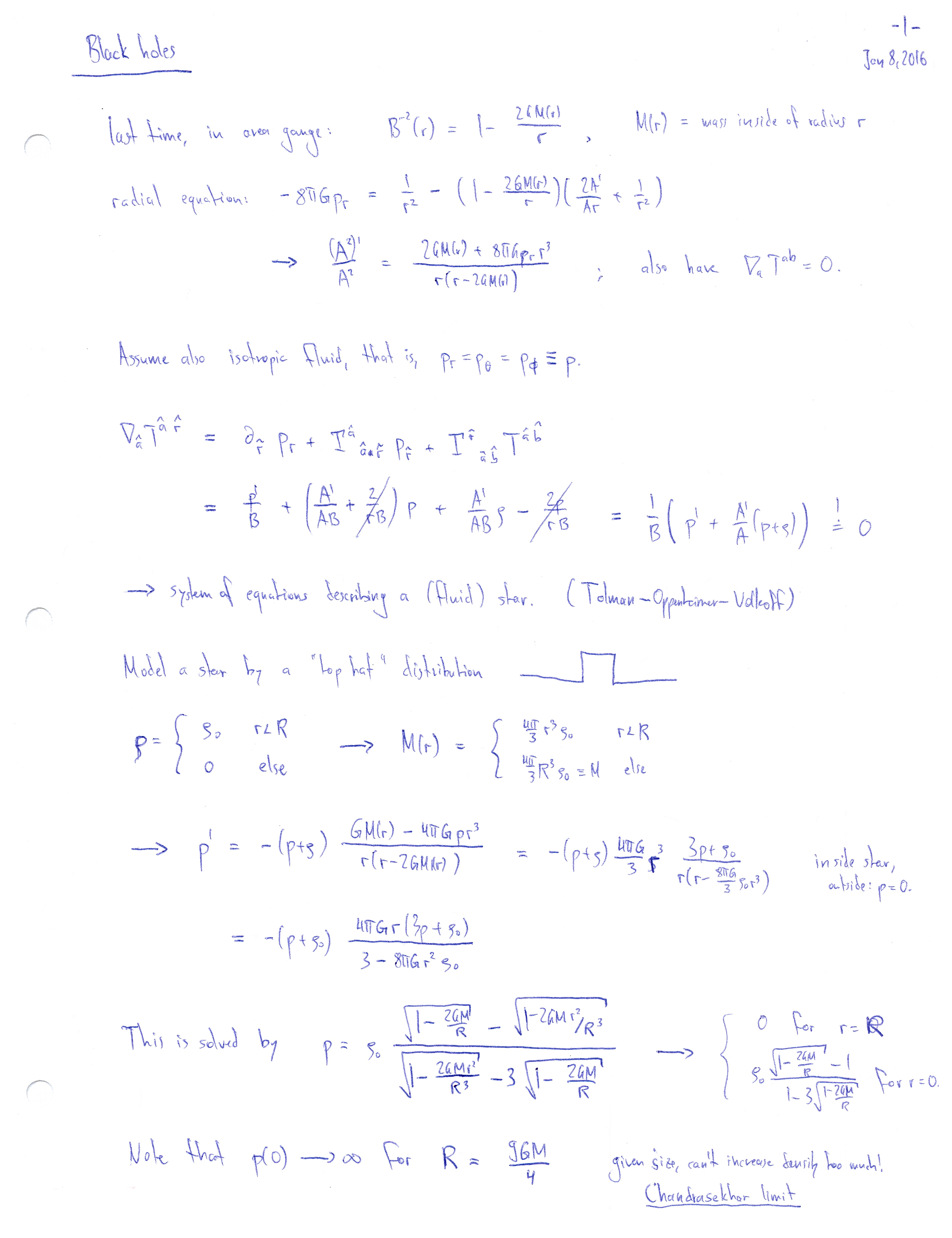 - 2013-05-03: elementary theory of degenerate stars (cont'd), interior solution for spherically symmetric stars