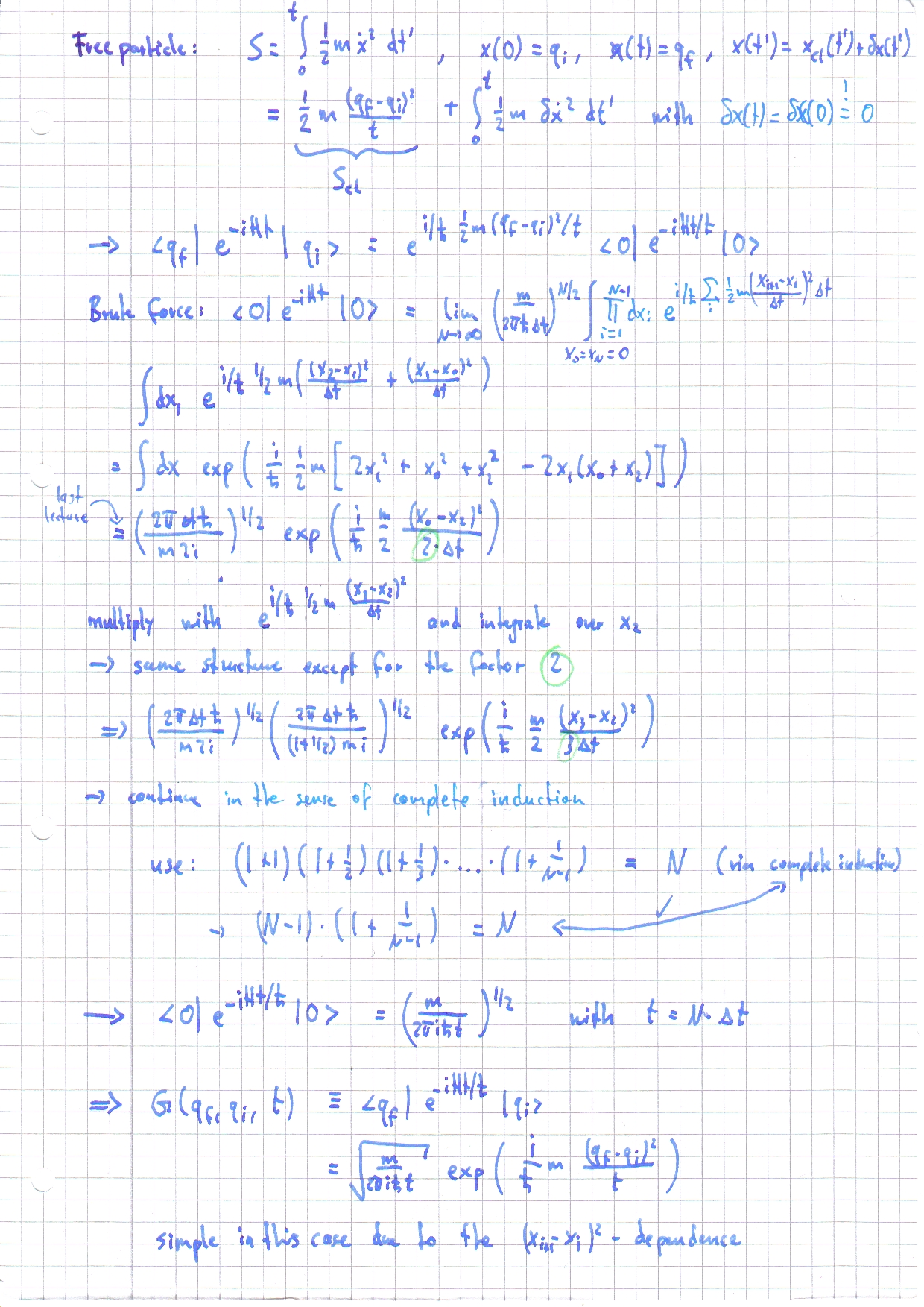 - 2016-09-19: free particle propagator (cont'd), relation between wave function and propagator, validity of classical description