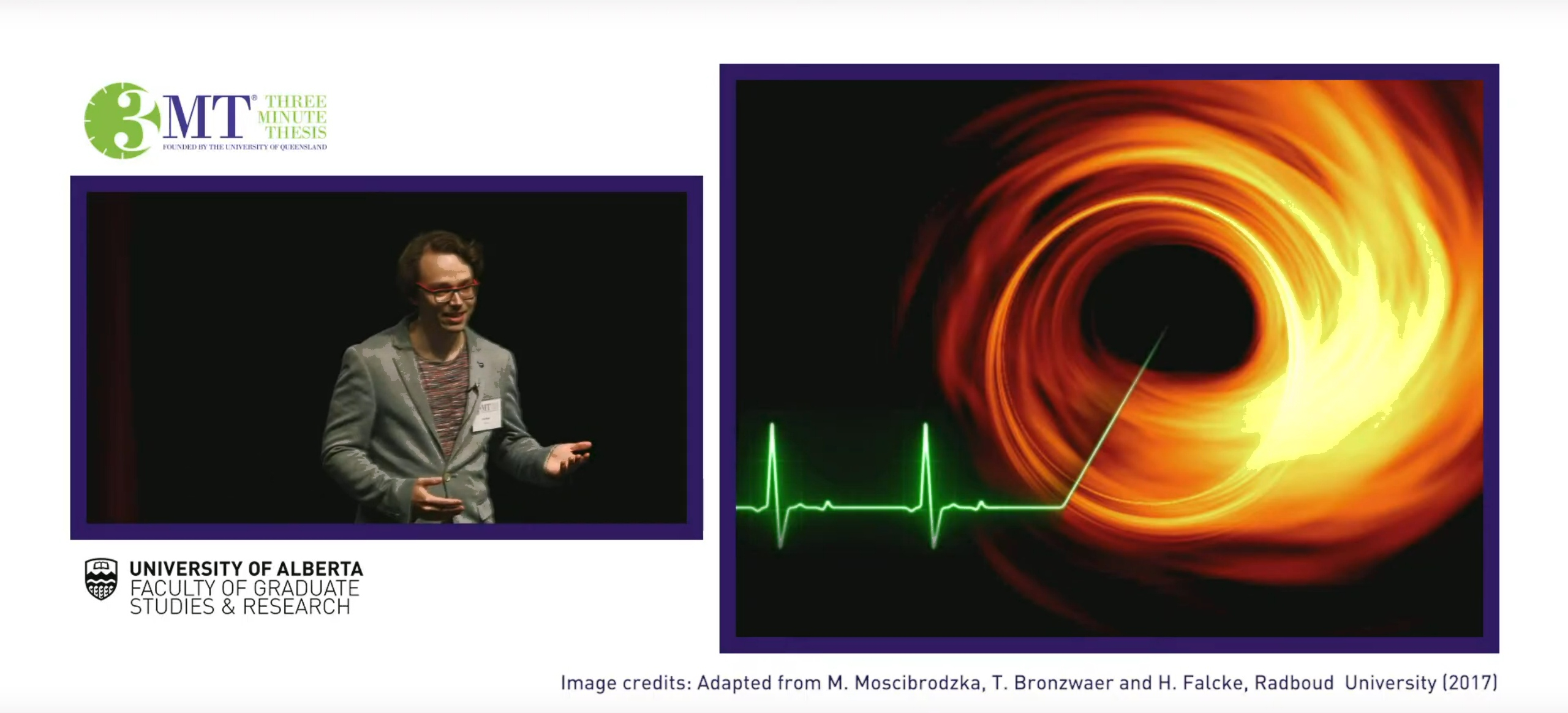 I wrote an invited article for the University of Alberta's YouAlberta news outlet, covering my experiences in graduate school, my research on black holes, and my outreach activities at the 3MT competition:
