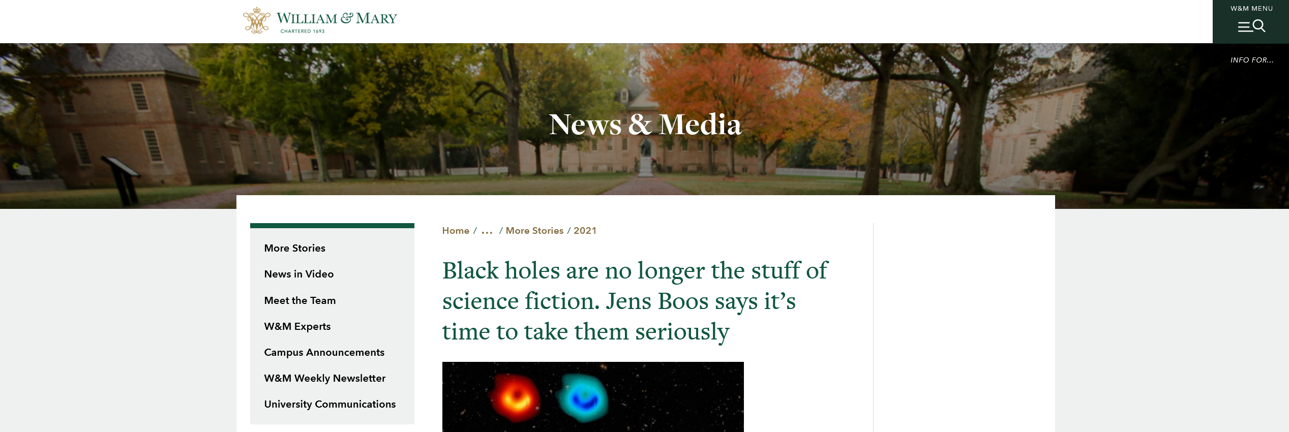 A lot of my work in theoretical physics is inspired by the extreme physics inside of black holes, and what we can do to better understand them. In this interview I spoke with Joe McClain at William & Mary about some aspects of my work: