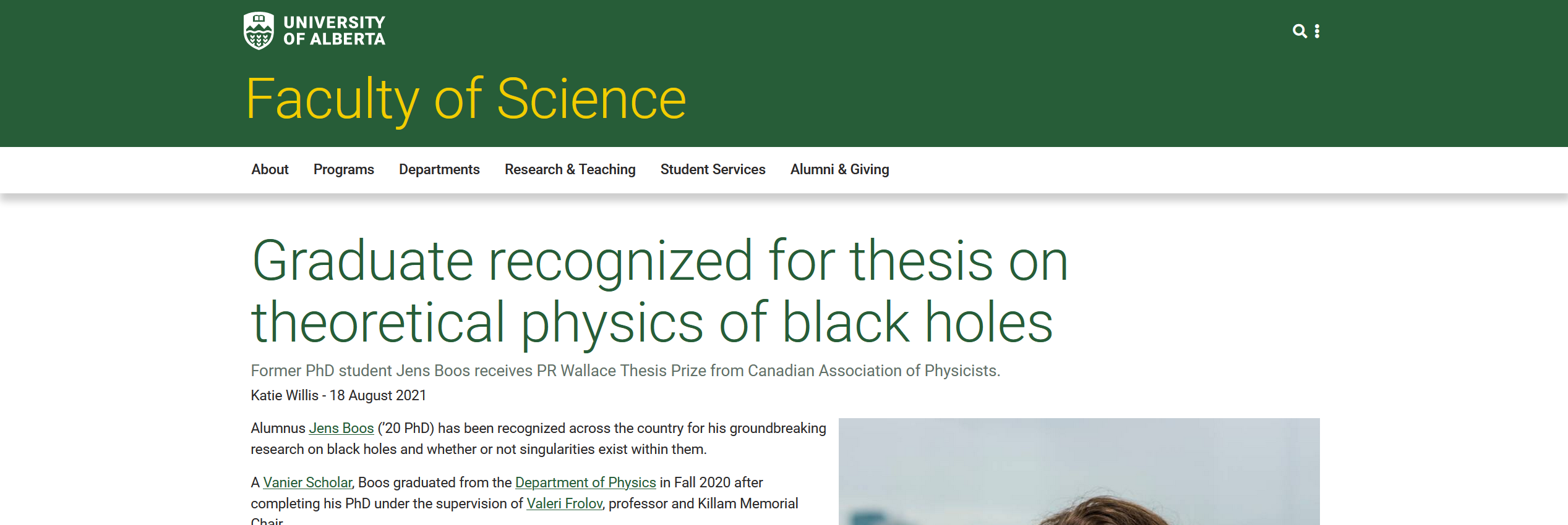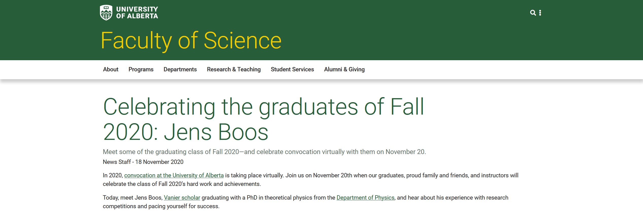 After receiving the prestigious Vanier Canada Graduate Scholarship in 2017 I was interviewed about my graduate research and my general interest in physics. See the article here: