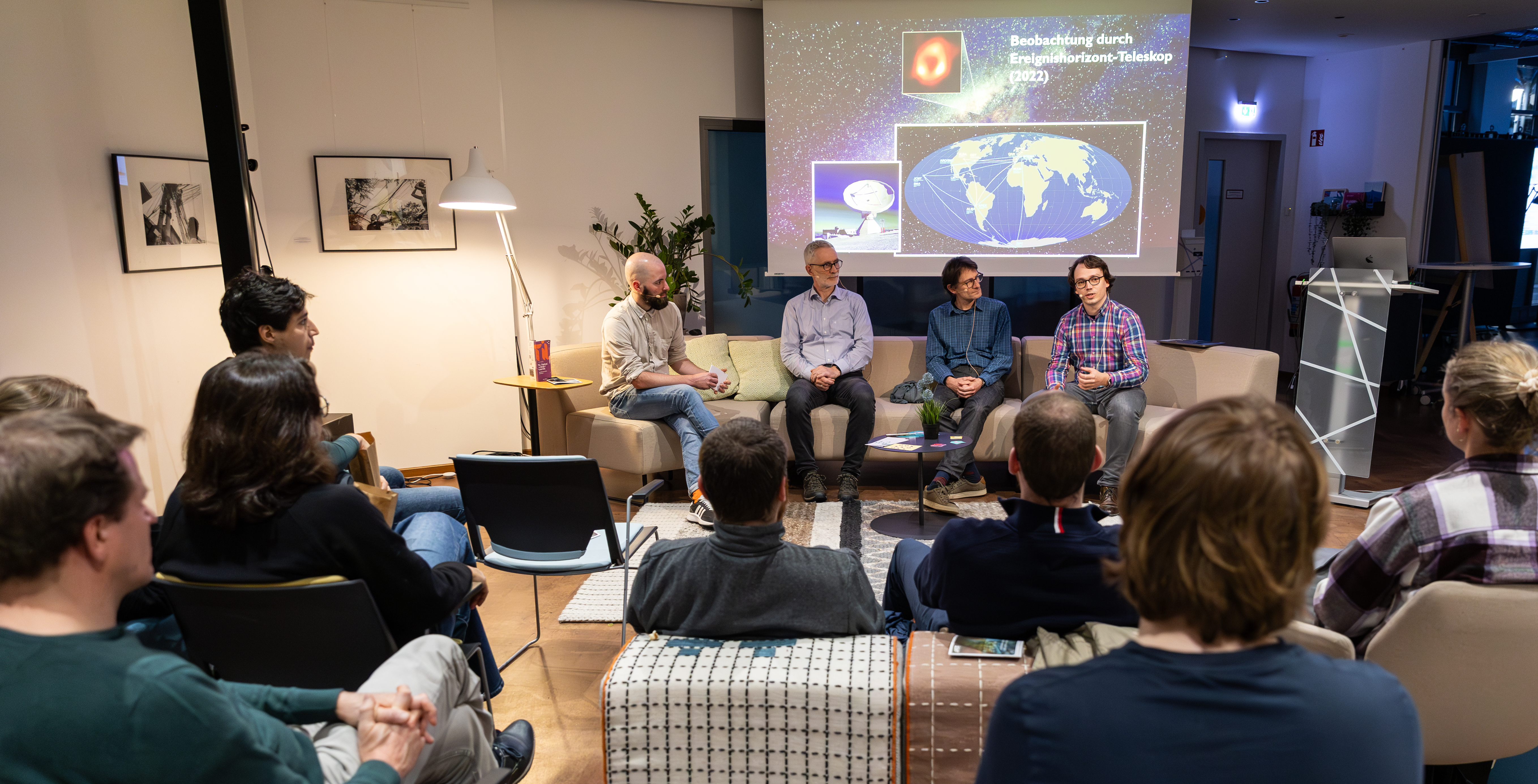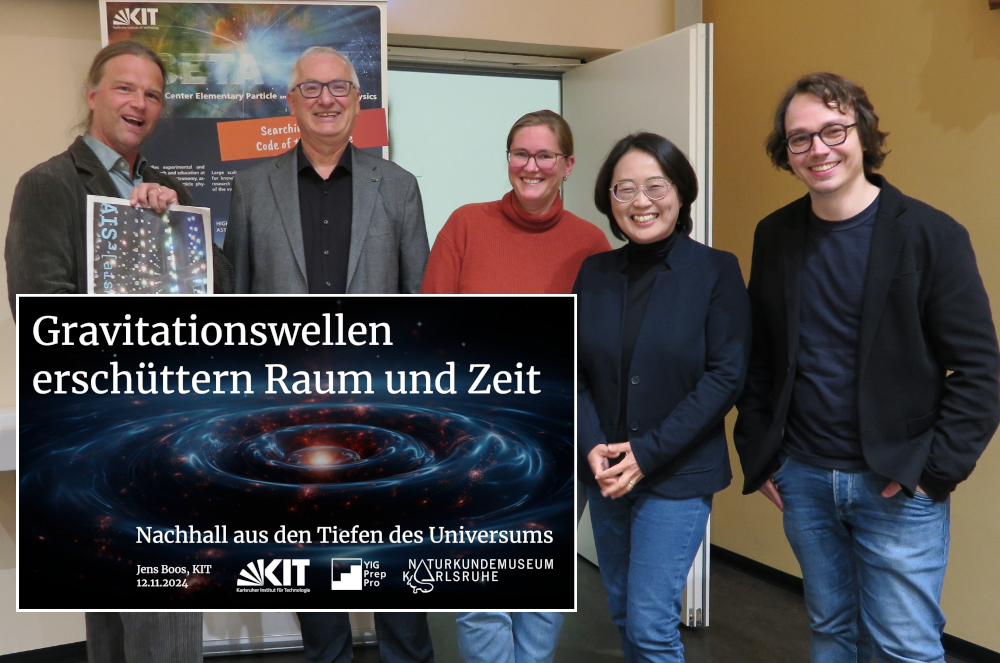 In fall 2024, I was invited for an evening on “Our Universe” to the Museum of Natural History in Karlsruhe. Together with colleagues from KIT we heard about neutrino particle physics (Dr. Donghwa Kang), their detection and depiction in the arts (Dr. Tim Otto Roth), and I had the opportunity to speak about gravitational waves, and my favorite topic: black holes! There were many questions in a crowded lecture hall, and we all left the evening having felt that we learned something new.